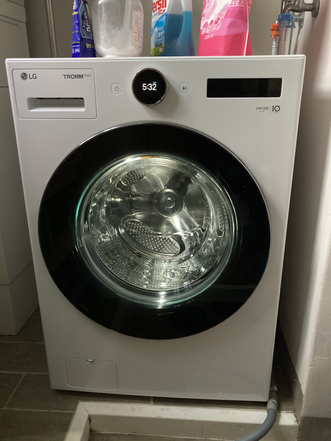 우선 설치는 아주 깔끔하게 잘 되었습니다. 설치기사님이 오셔서 기존 세탁기는 철거해가시고 바닥 청소 후 바로 설치했습니다.
