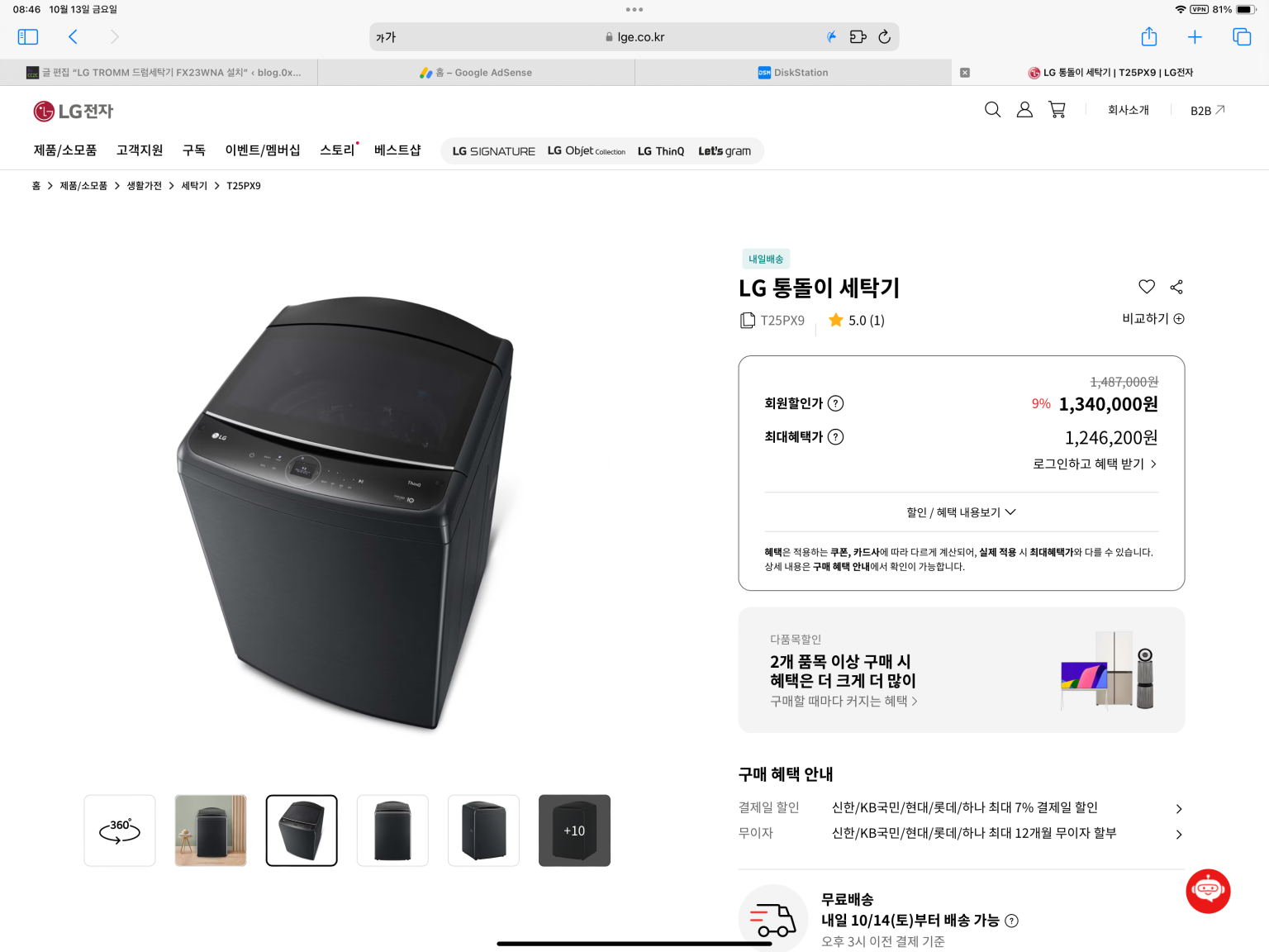 수리 불가 판정 받고 바로 공홈에서 적당한 거 하나 질렀습니다. 워시타워 사고싶었는데 그건 새 집 가면 사는 걸로.. ㅎㅎ