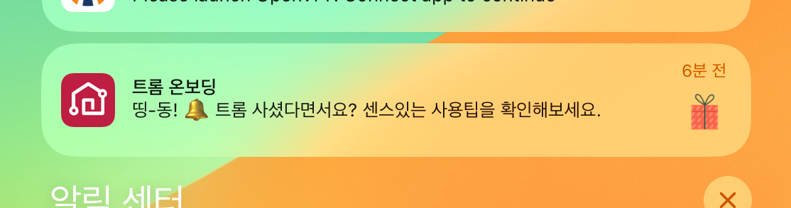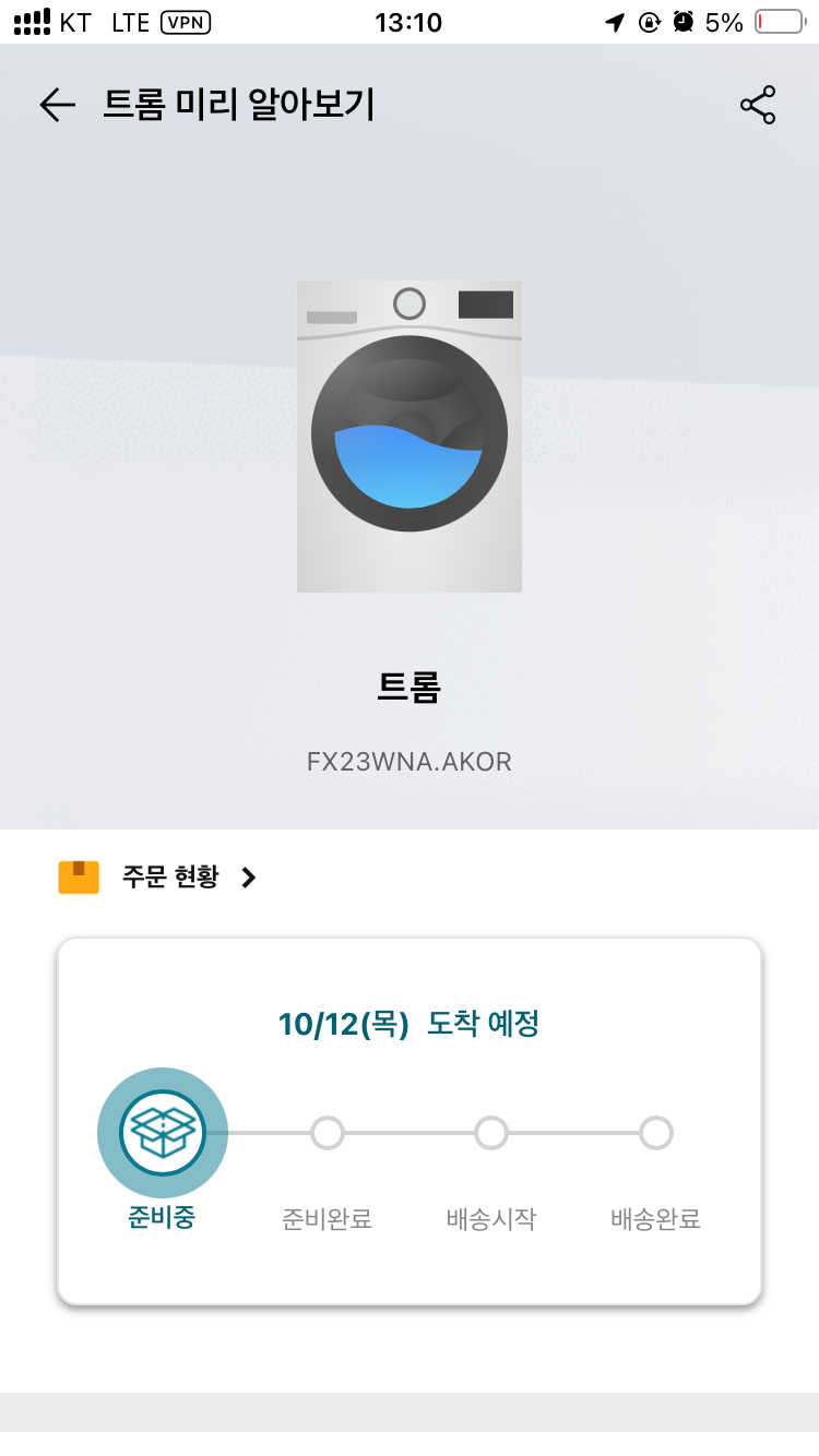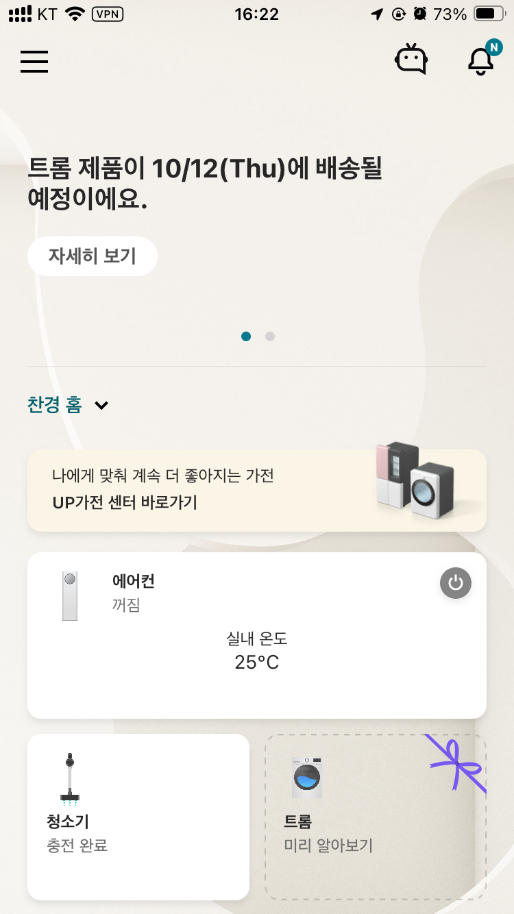 주문하고 좀 지나서 갑자기 ThinQ 앱에서 세탁기 샀냐고 알림이 왔습니다. 예전이랑 다르게 이제 홈페이지와 고객정보가 서로 공유되나봅니다.
