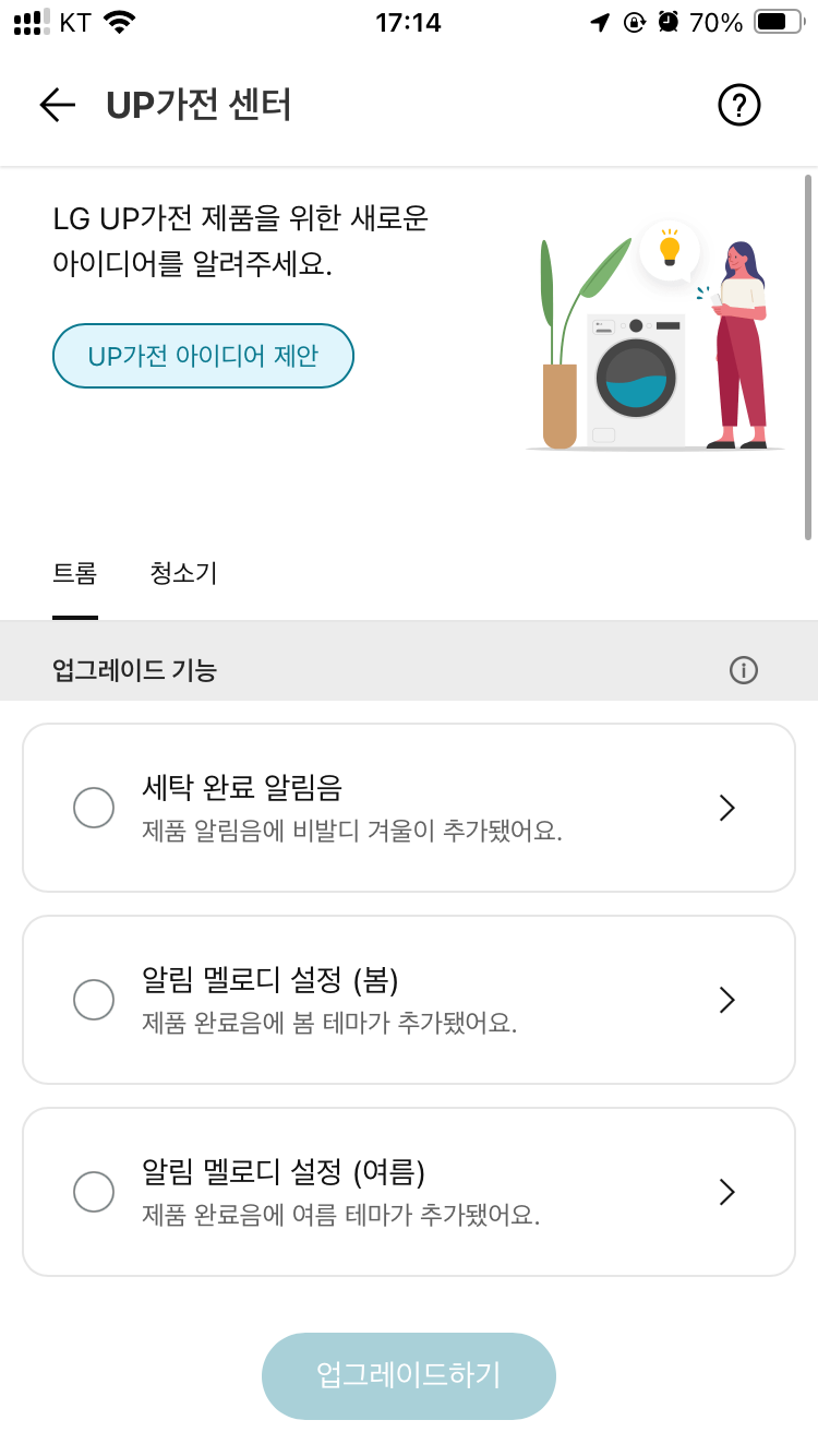 UP가전 센터에서 원하는 기능을 골라 업그레이드하여 사용할 수 있습니다.