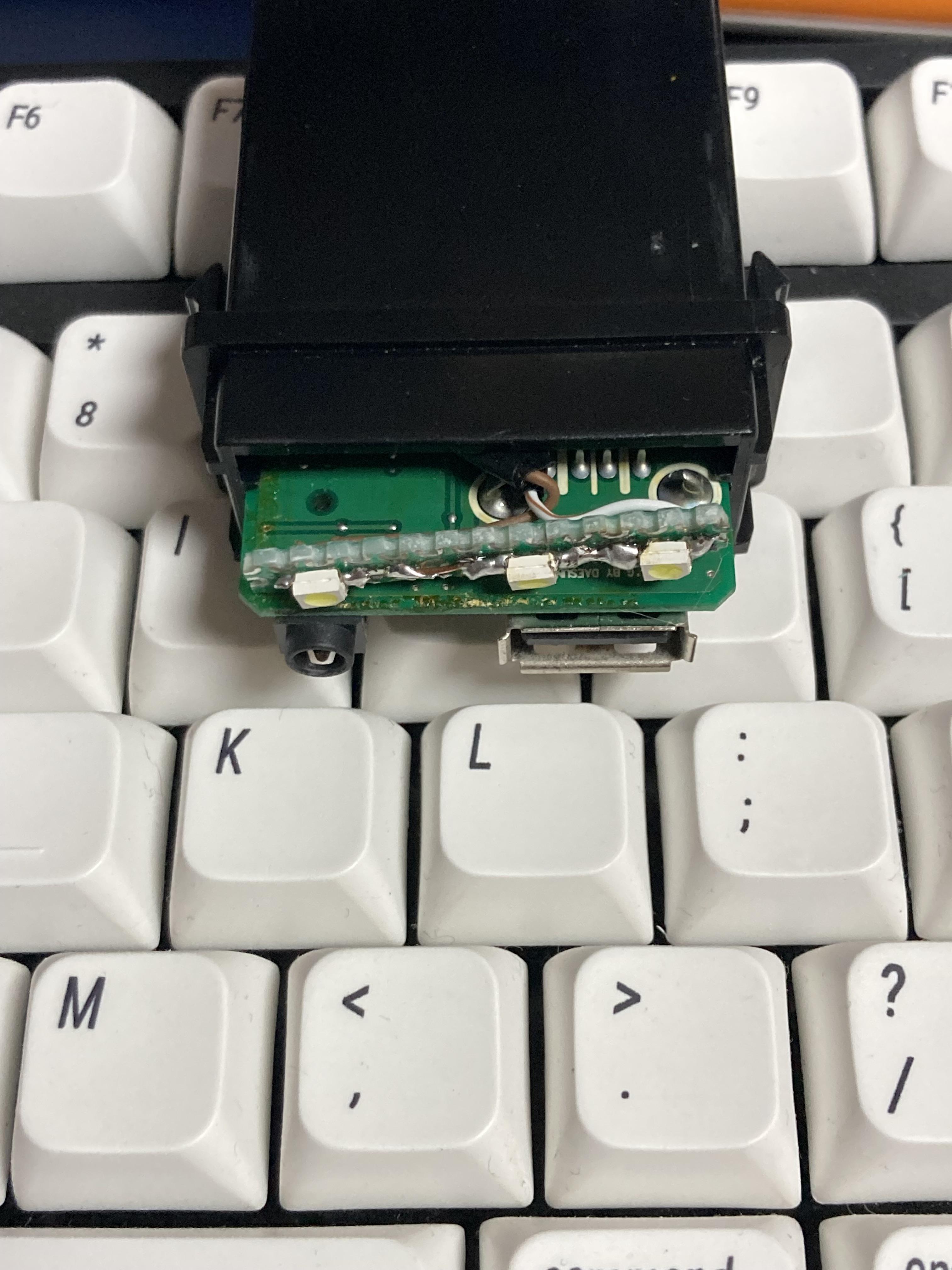 AUX & USB 포트 커버를 열고 LED를 안쪽에 비춰봅니다. 대략 이런 모습으로 불이 들어올 것 같네요.