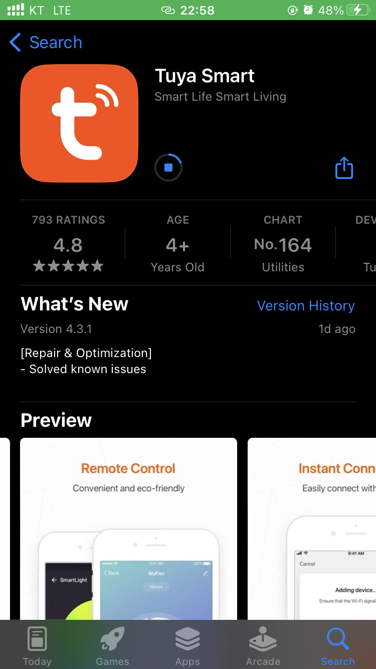 설명서에는 Smart Life 앱으로 작업하라고 하는데, Tuya Smart로 해도 됩니다. 저는 Tuya로 진행했습니다.