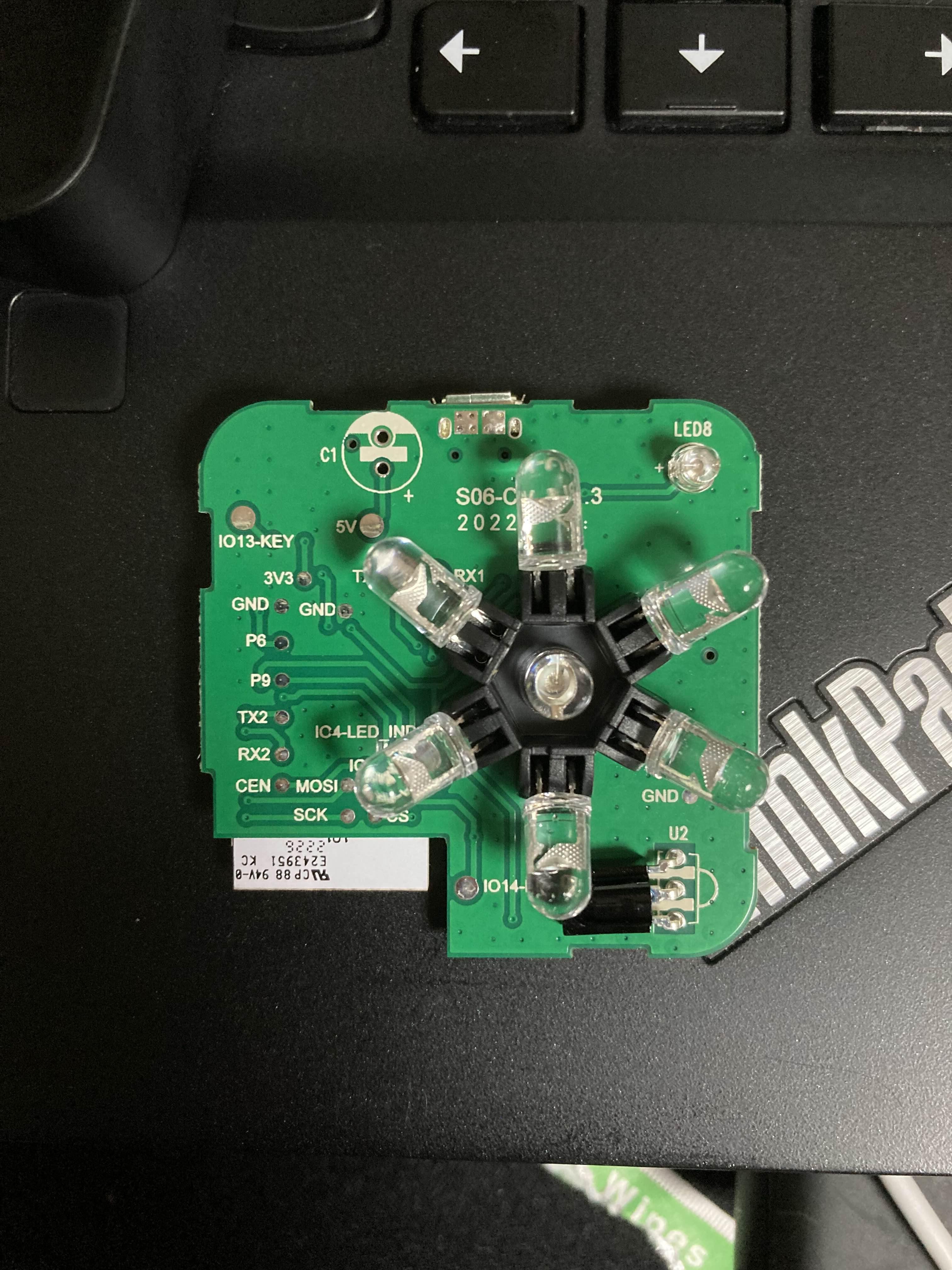 사용해보기 전에 궁금해서 뜯어보았습니다. IR 송신기 7개와 수신부 1개, 상태 표시등 1개와 하단의 리셋 스위치 하나로 구성되어 있습니다.