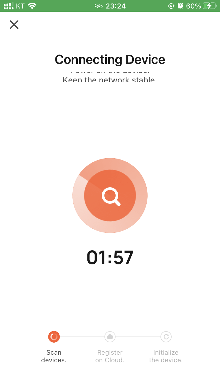 또는, 하단 버튼을 5초 이상 길게 눌러 상태 표시등이 천천히 깜빡이게 한 다음 직접 추가해도 됩니다.