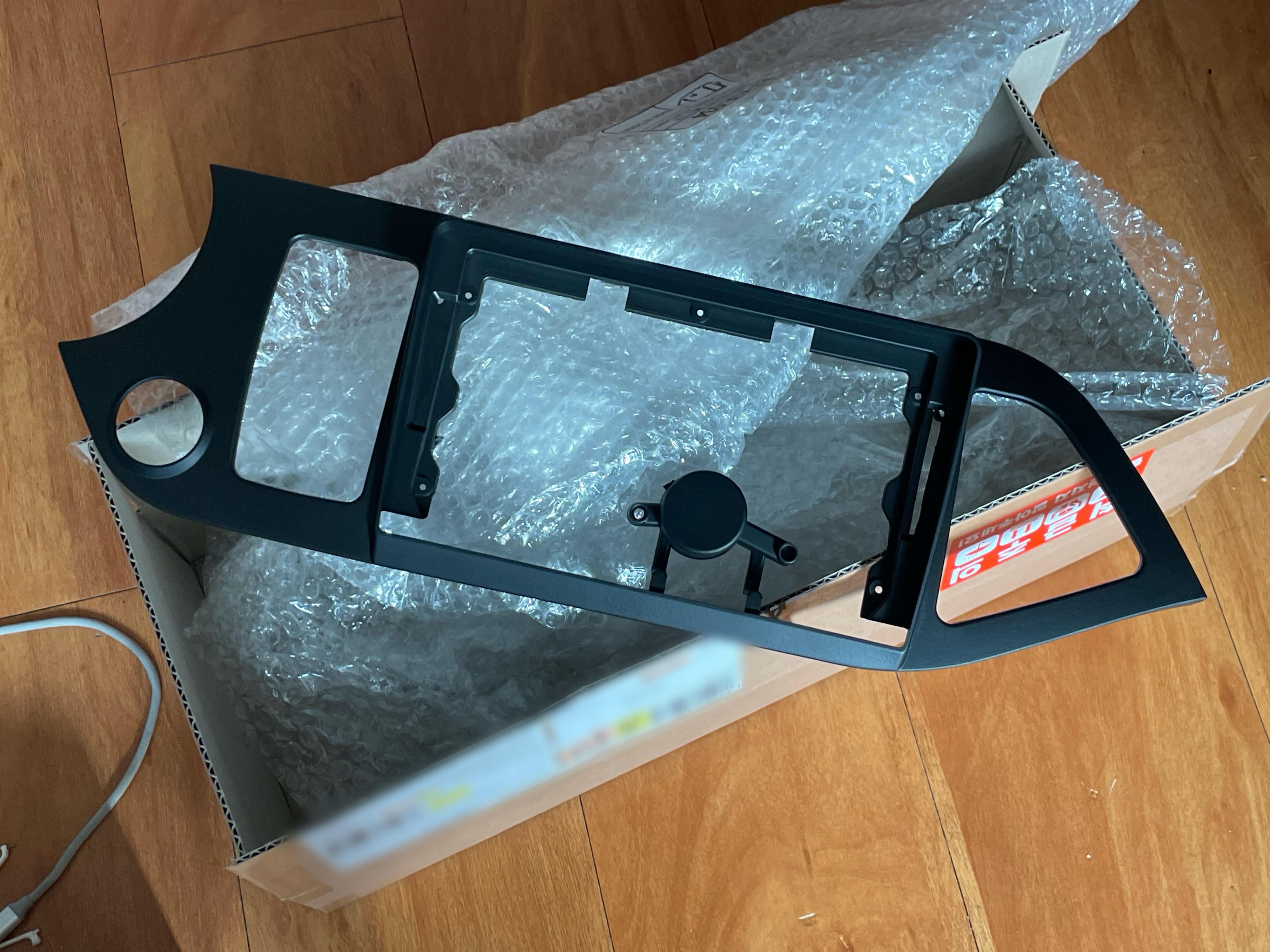 모닝 전용 마감재와 안드로이드 올인원 및 각종 배선, 후방카메라와 브라켓입니다.