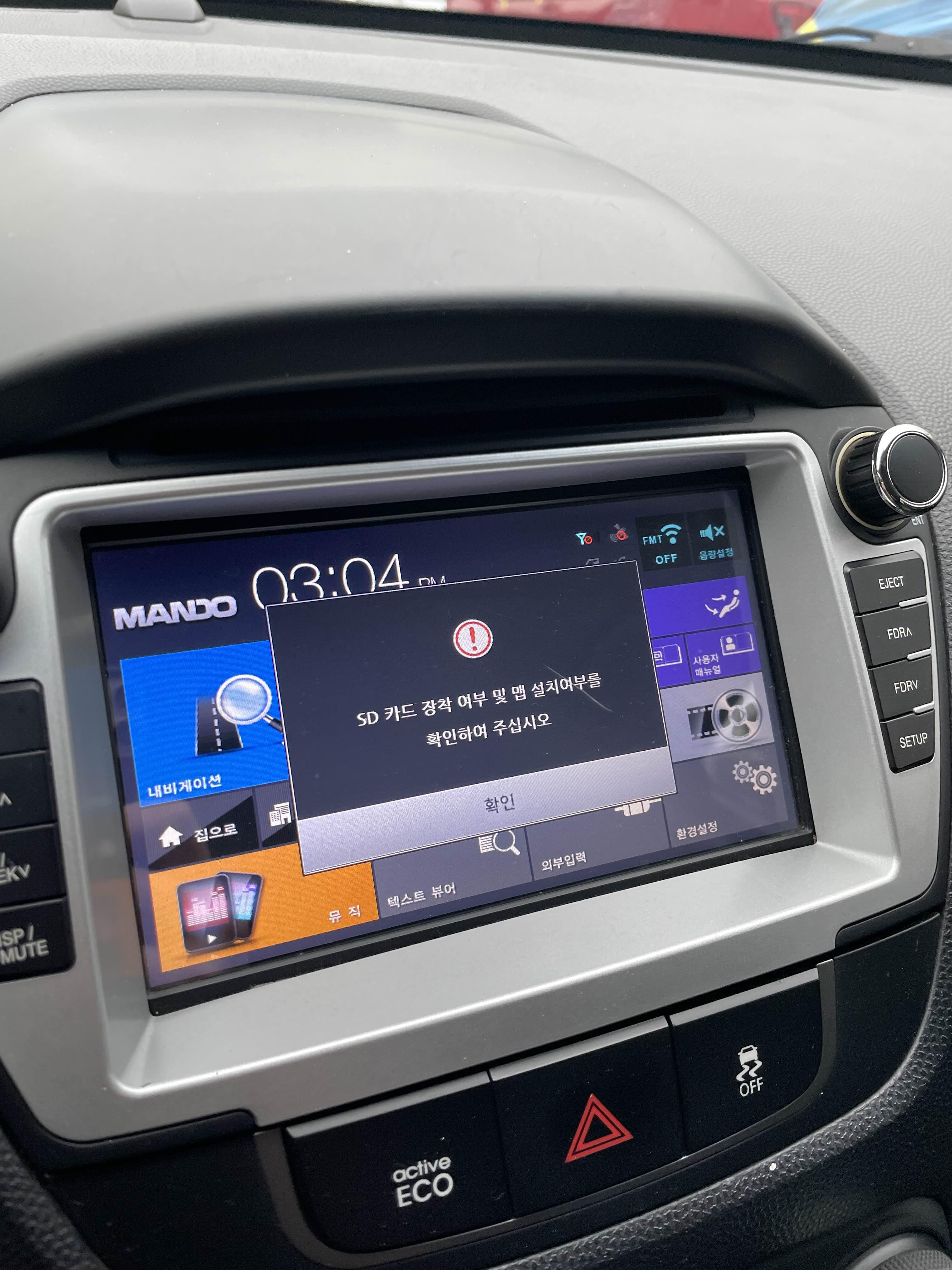 이 차는 내비게이션에 SD카드가 없다고 뜨는 문제가 있었는데요.