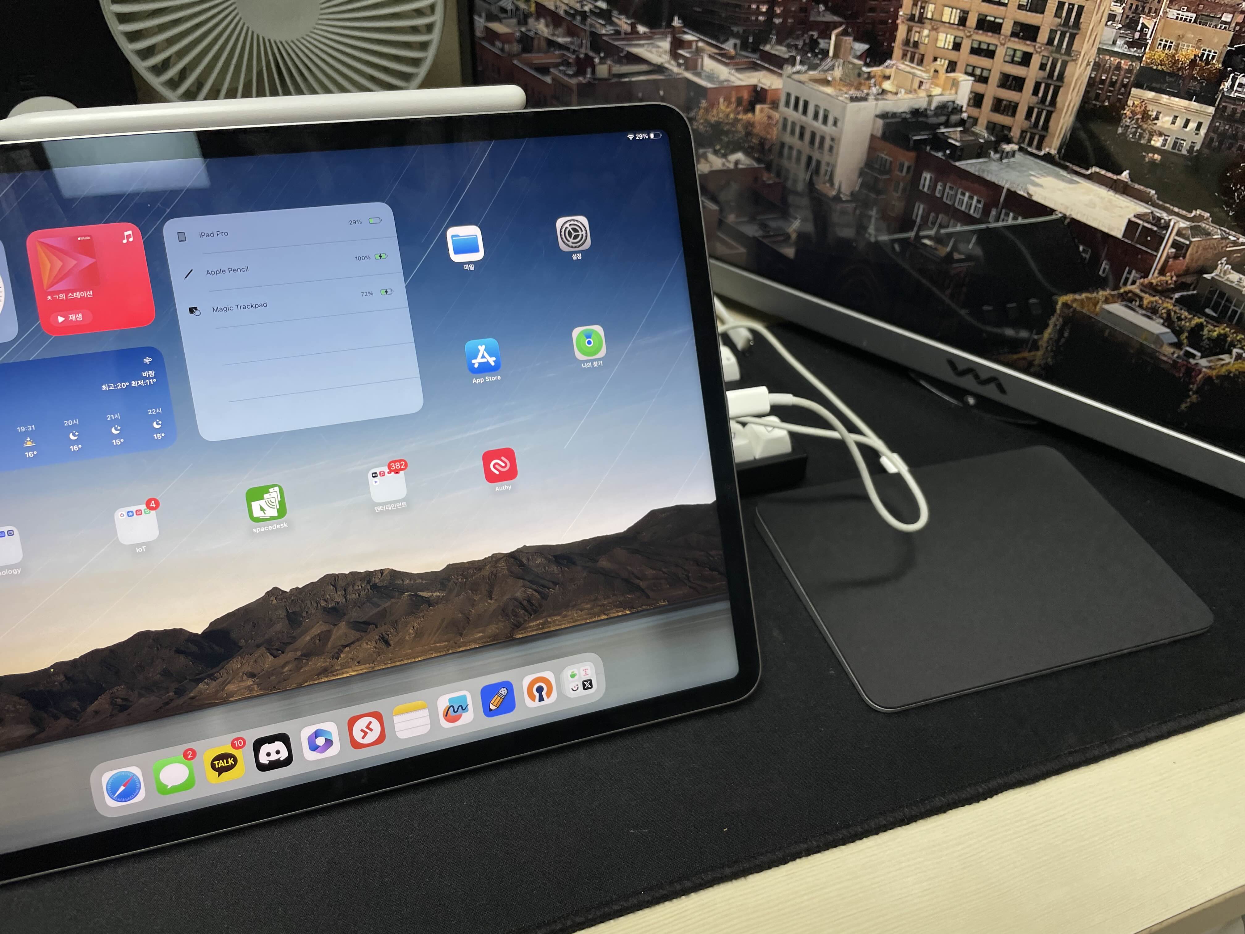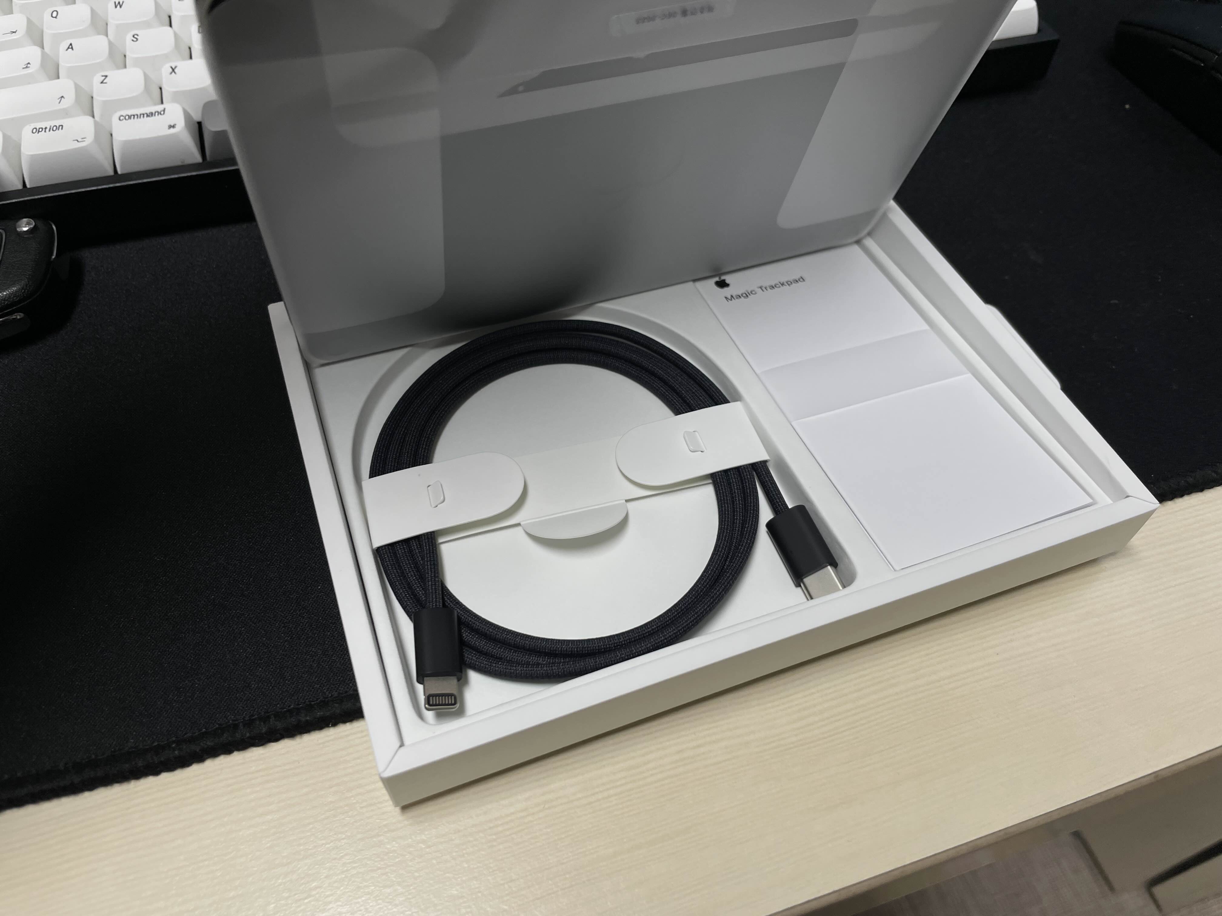 친환경이 어쩌구 하지만 저 우븐 케이블만큼은 좋은 변화라는 생각입니다. iPad에도 같이 딸려와서 쓰고 있는데 기존 Apple 정품 케이블보다 튼튼하고 좋더라구요.그놈의 라이트닝...은 사실 트랙패드도 한 번 충전하면 꽤 오래 쓰기 때문에 크게 거슬리는 부분은 아닌 것 같아요. 적어도 제가 폰을 바꾸기 전까지는 말이죠.