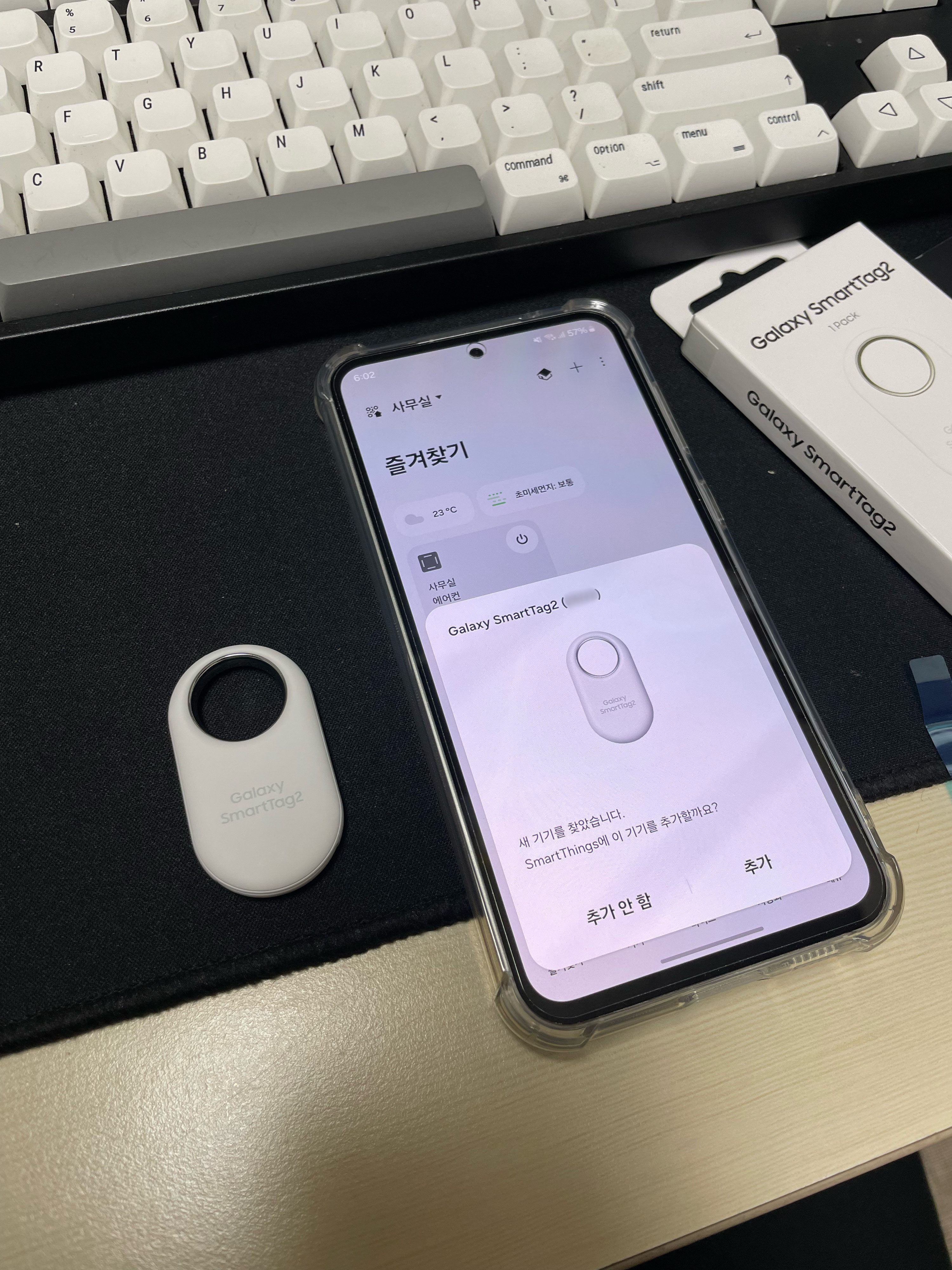 반면 갤럭시 스마트태그는 구멍이 있어 본체 자체를 열쇠고리 등에 걸고 사용할 수 있어 좋습니다. 카라비너였으면 더 편했을 것 같은데..
