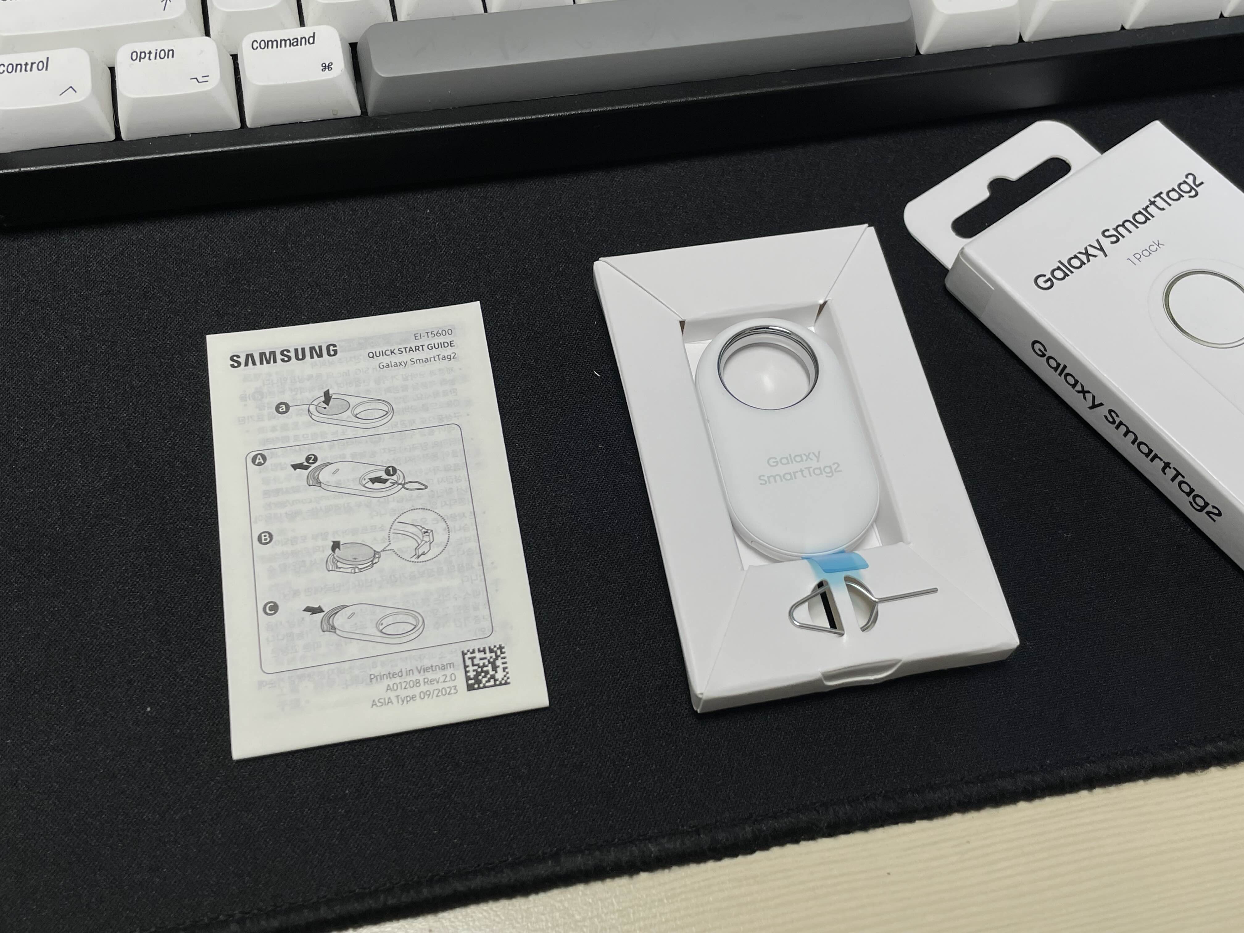구성품은 태그 본체와 건전지 제거용 핀, 간단 사용 설명서가 전부입니다.