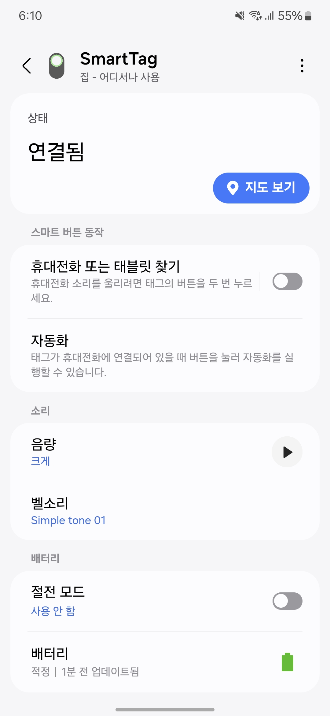 스마트태그의 버튼을 두 번 눌러 휴대폰에서 소리를 울릴 수도 있고, 자동화를 설정해서 SmartThings IoT 제어용으로 사용하는 등 다양하게 활용할 수 있습니다.