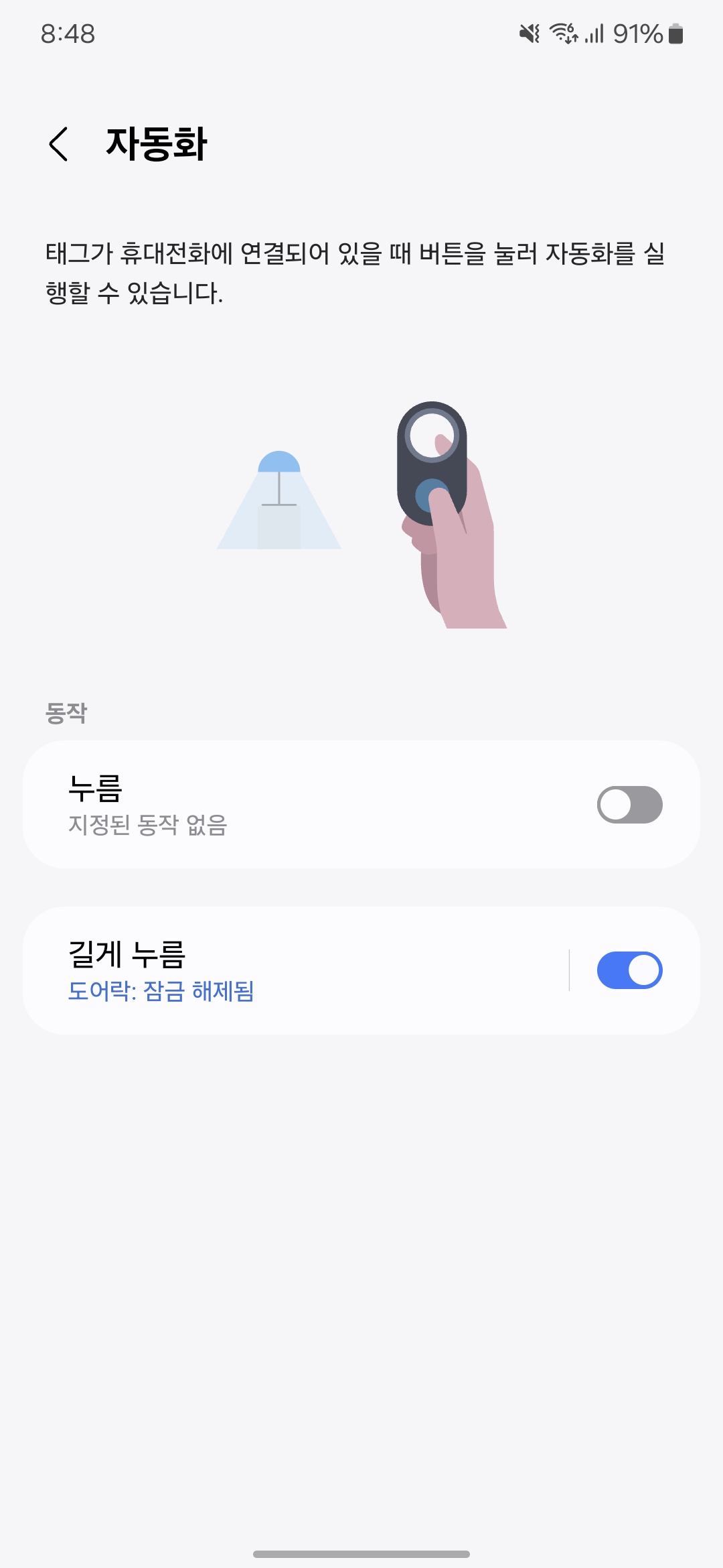 저는 길게 눌러 도어락을 열도록 설정해놨는데, 다른 IoT 기기(조명, 스마트 플러그 등)도 제어할 수 있고, 아니면 미리 설정한 루틴을 수행하도록 할 수도 있습니다.