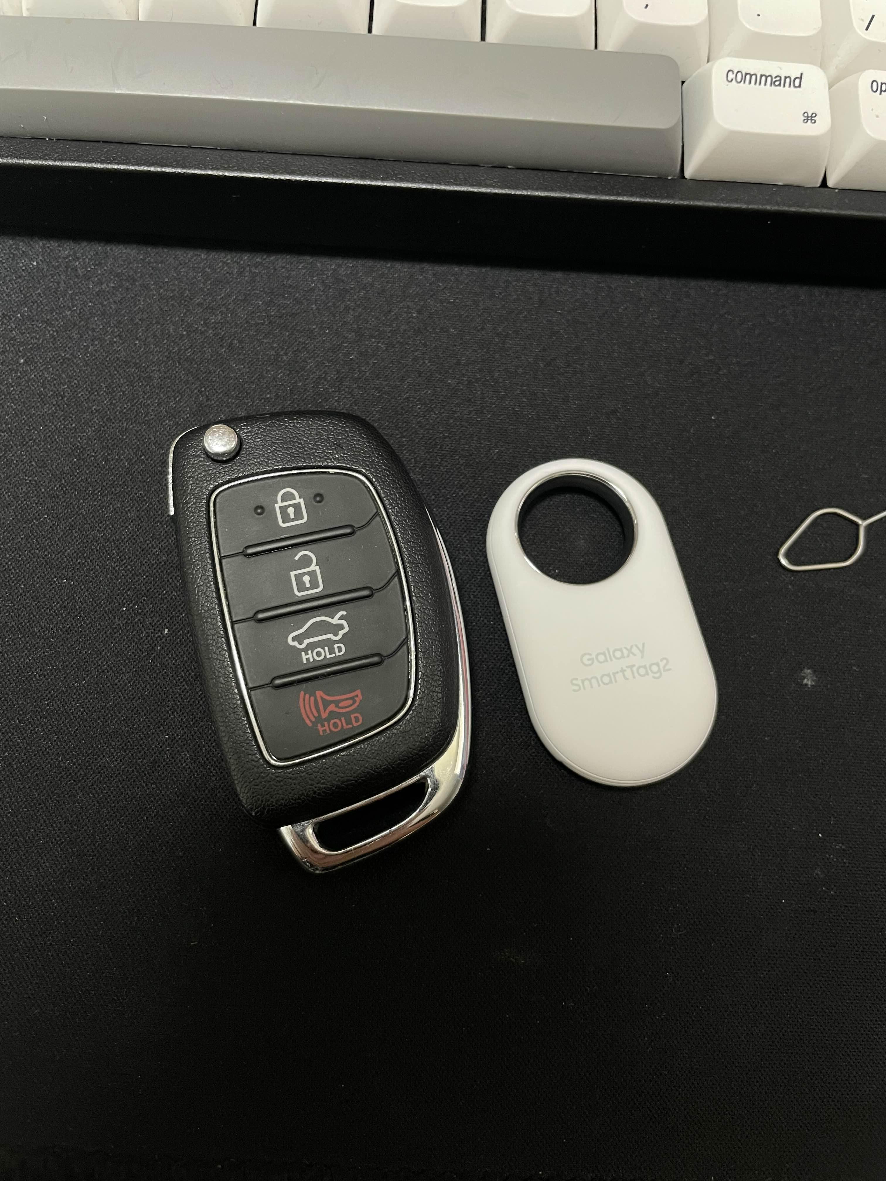 반면 갤럭시 스마트태그는 구멍이 있어 본체 자체를 열쇠고리 등에 걸고 사용할 수 있어 좋습니다. 카라비너였으면 더 편했을 것 같은데..