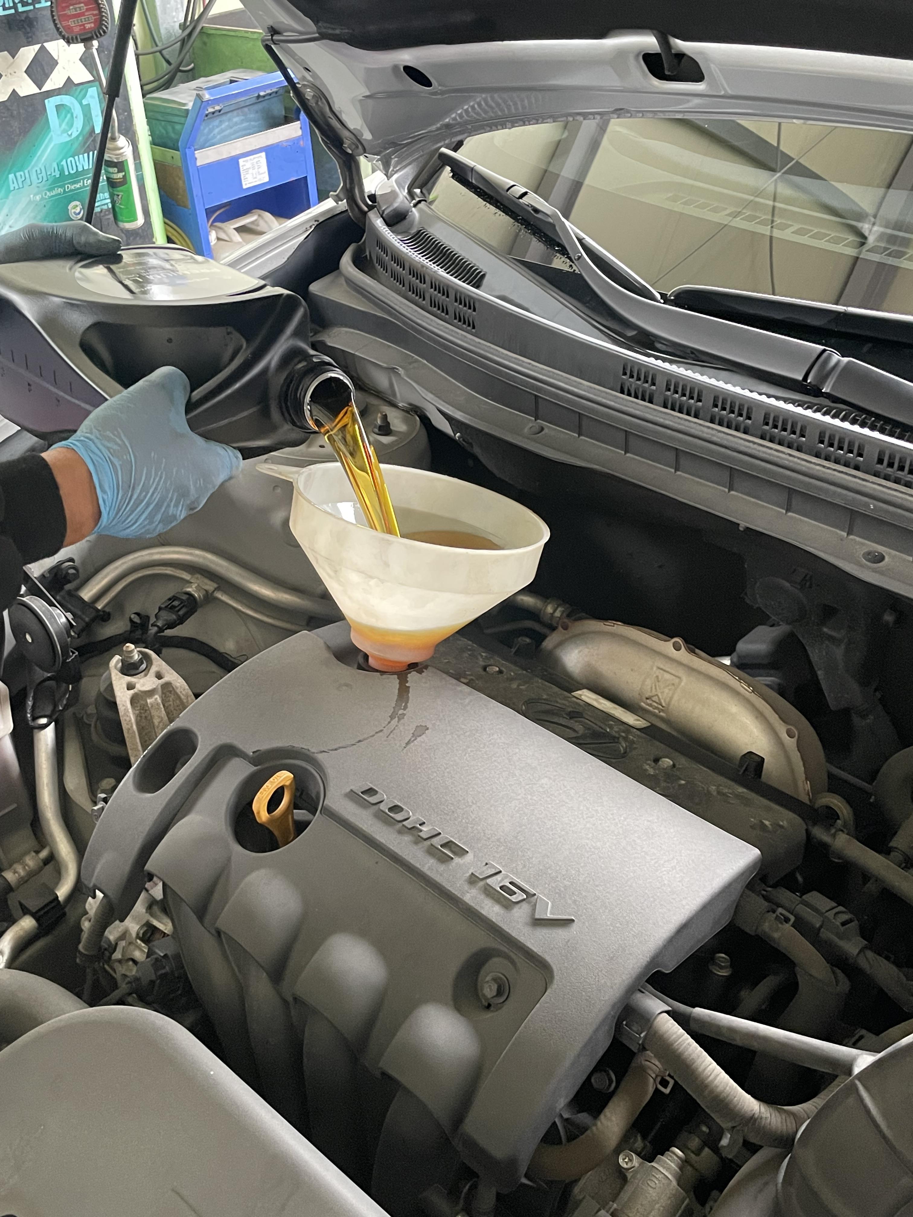 언더커버도 장착했으니, 이제 차량을 내리고 신유를 주입합니다.