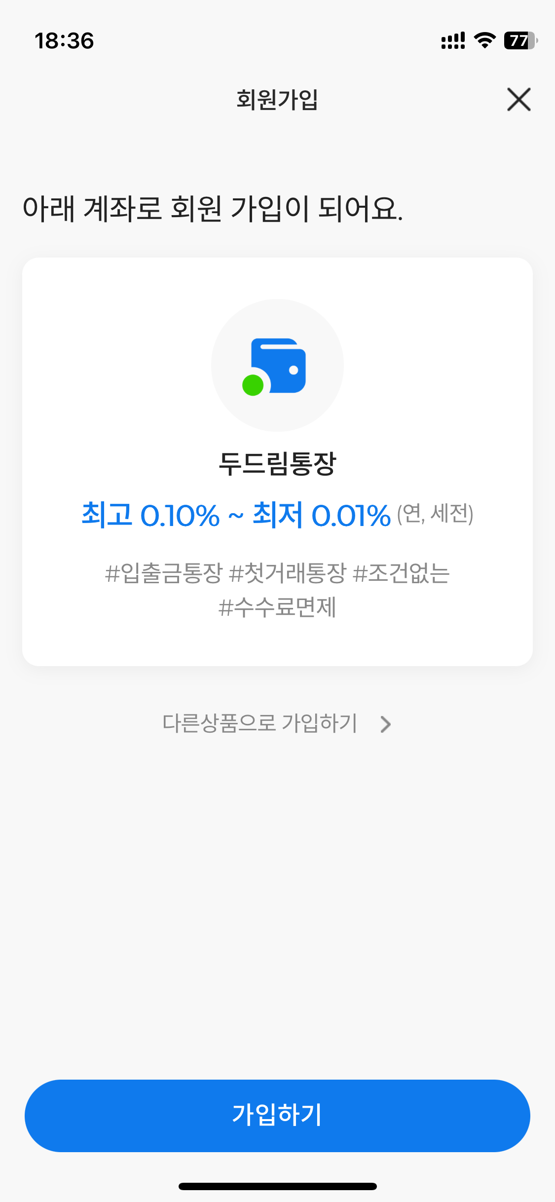 SC제일은행 앱을 설치하고 휴대폰 본인인증을 하면 두드림통장으로 회원가입이 바로 진행됩니다. 다른 통장도 많은데 보통 두드림으로 많이들 만드시더라구요..