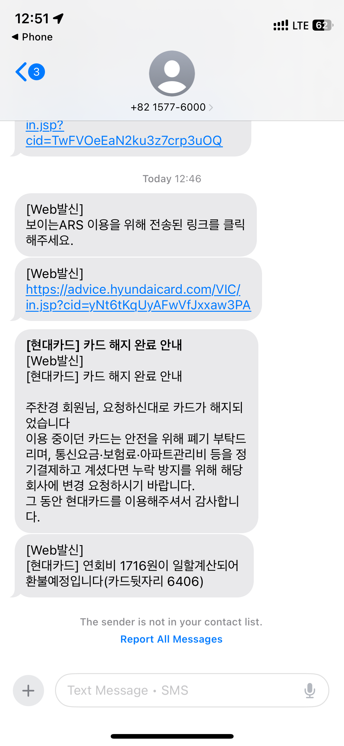 우여곡절 끝에 카드 해지가 완료되었고, 연회비 환불과 함께 Apple 지갑에서 카드가 삭제되었습니다.