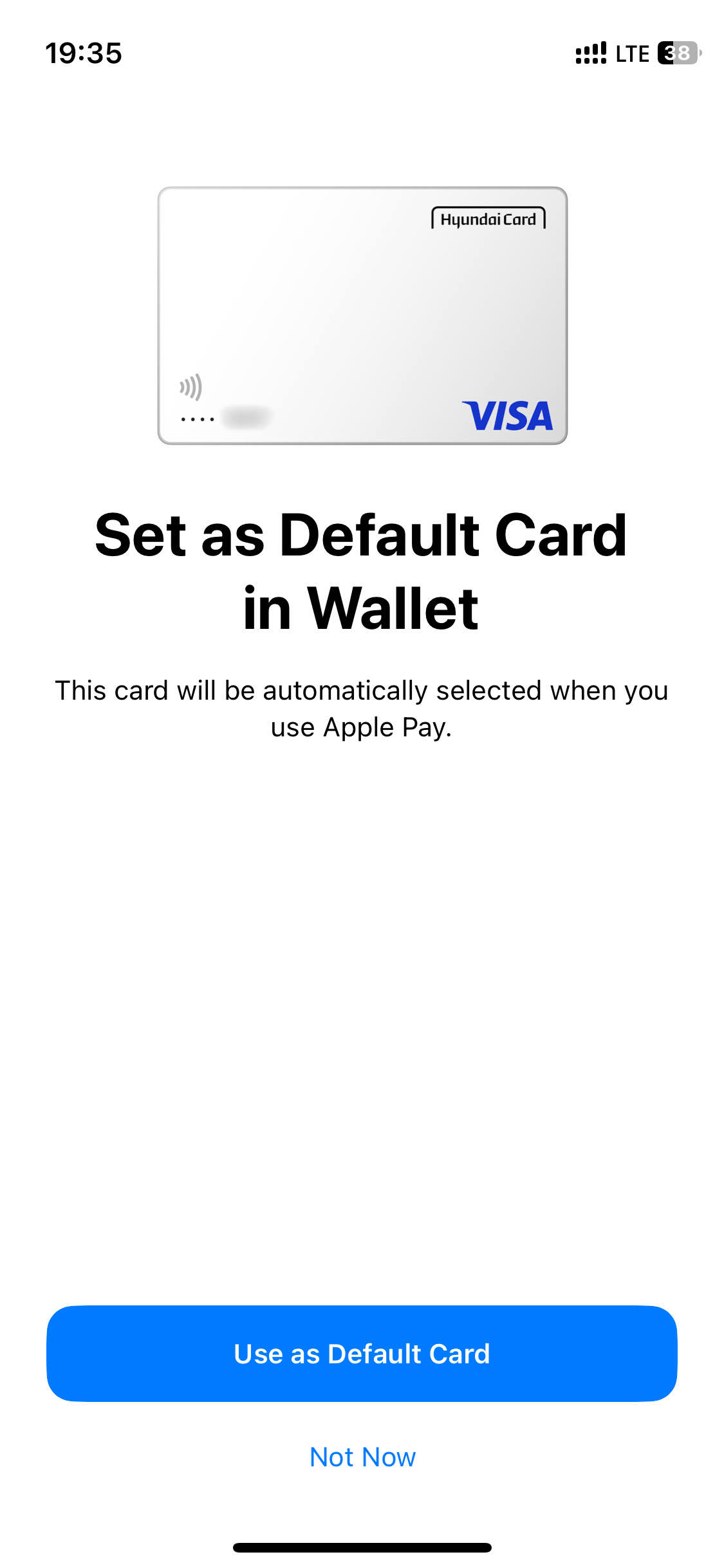 다만 무슨 이유에서인지 Apple Watch에 카드를 추가하는 과정에서 현대카드 로고와 Visa만 있는 빈 카드 이미지가 불러와졌고, 워치만 이렇게 들어간 줄 알았더니 iPhone도 똑같은 이미지로 바뀌어 버렸습니다.