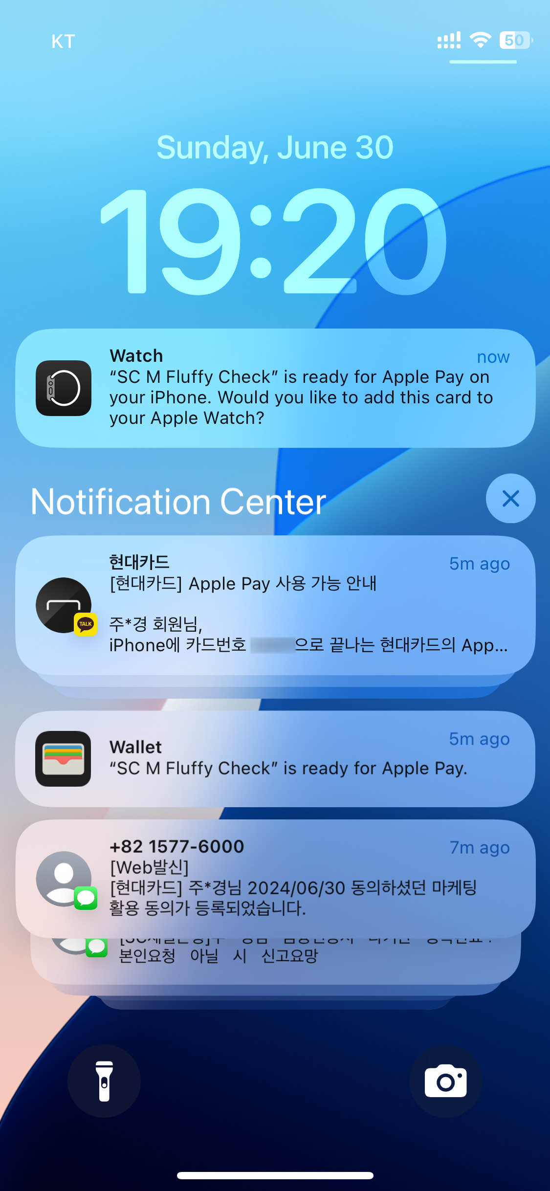 카드 발급이 완료되었으니 Apple Pay도 등록해야겠죠? 실물카드 수령 전에 앱카드를 Apple Pay에 바로 등록할 수 있습니다.