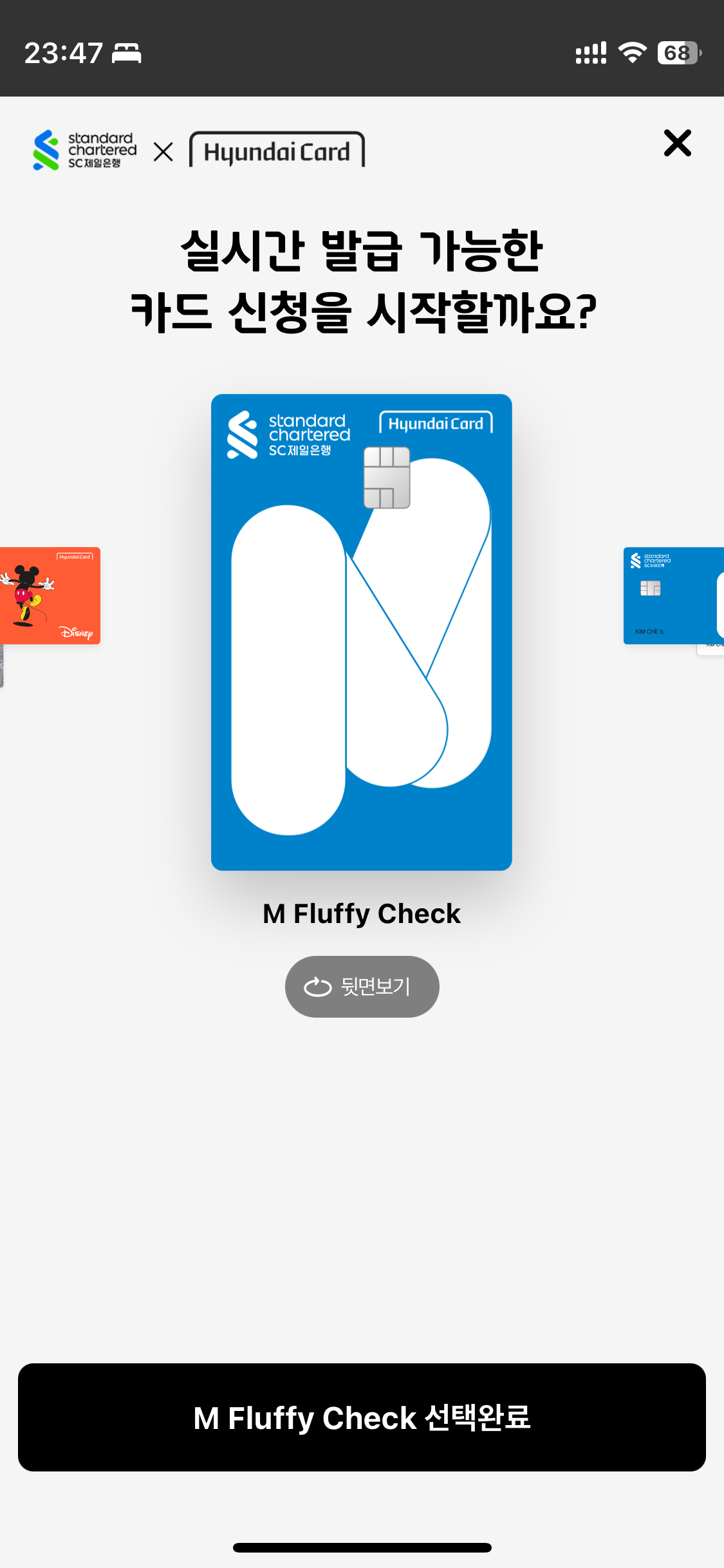 SC제일은행-현대카드는 모바일 웹 및 현대카드 모바일 앱에서만 신청이 가능합니다.