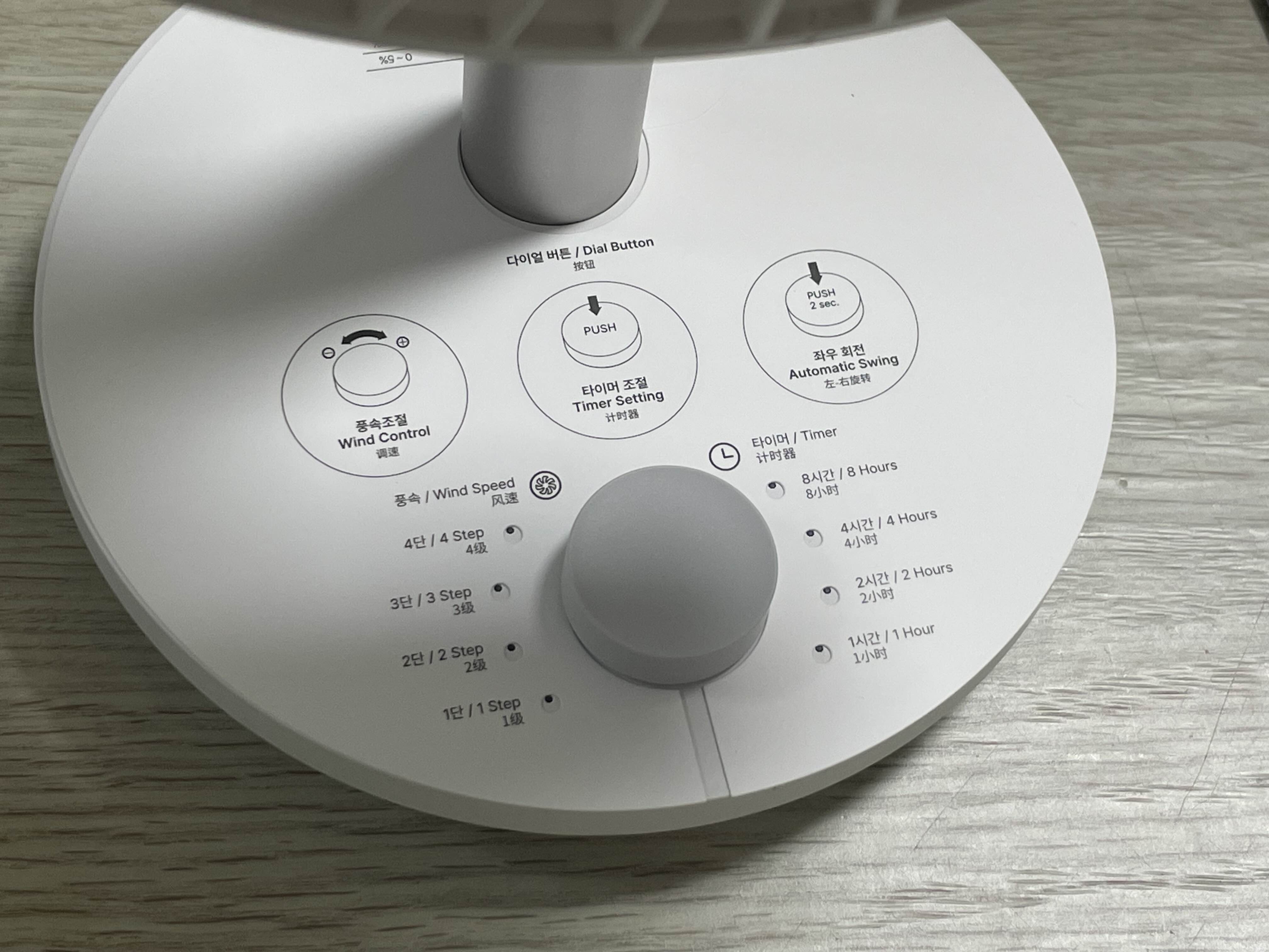 사진에서 보시다시피 풍속 표시등과 배터리 표시등이 추가되었고, LED 개수를 맞추기 위해서인지는 몰라도 타이머가 기존의 4시간에서 한 칸이 추가되어 8시간까지 가능하도록 변경되었습니다.