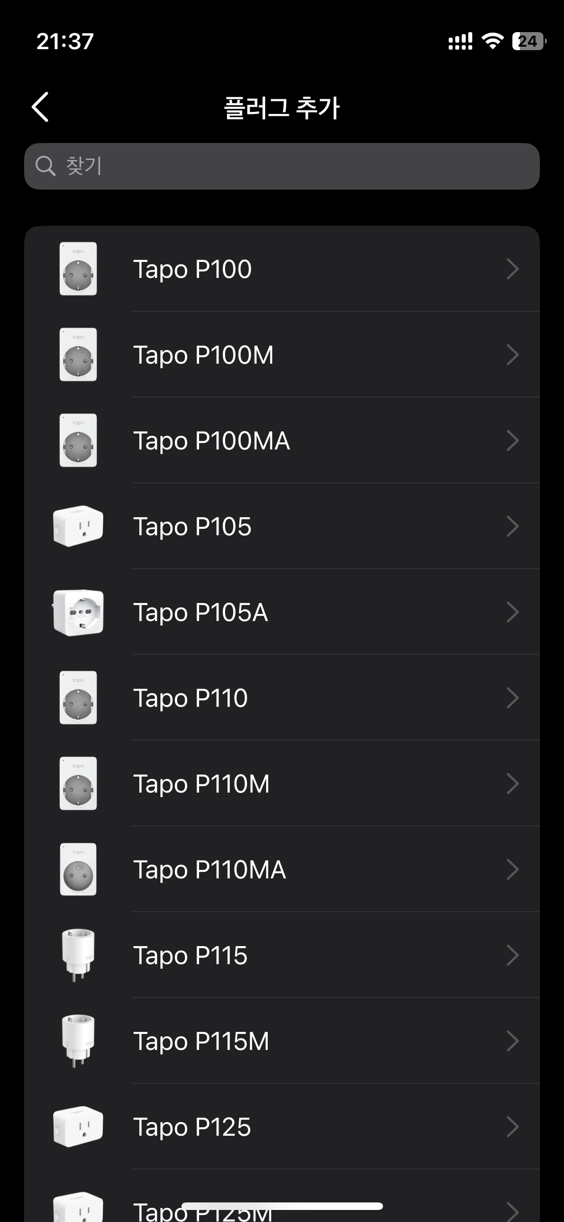 장치 추가 → 플러그 → Tapo P110을 선택하고...