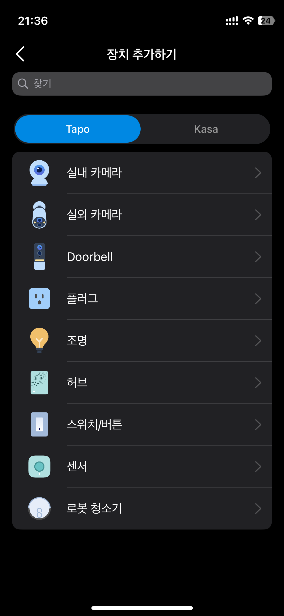 기기 추가는 간단한 편이지만, 요즘 출시되는 IoT 기기들처럼 간편 설정같은 그런 건 없는 듯하고 기기 목록에서 직접 찾아 등록해야 합니다.