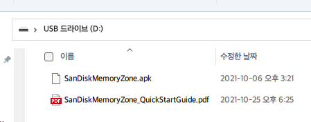 기본 파일로는 SanDisk Memory Zone APK와 퀵 스타트 가이드가 들어있습니다. Secure Access는 안 넣어주나 봅니다.