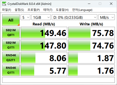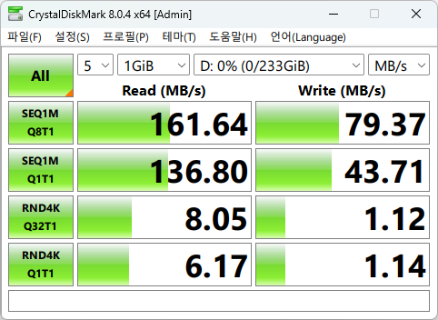 실제 파일 전송 속도도 벤치마크 결과와 크게 다르지 않습니다.