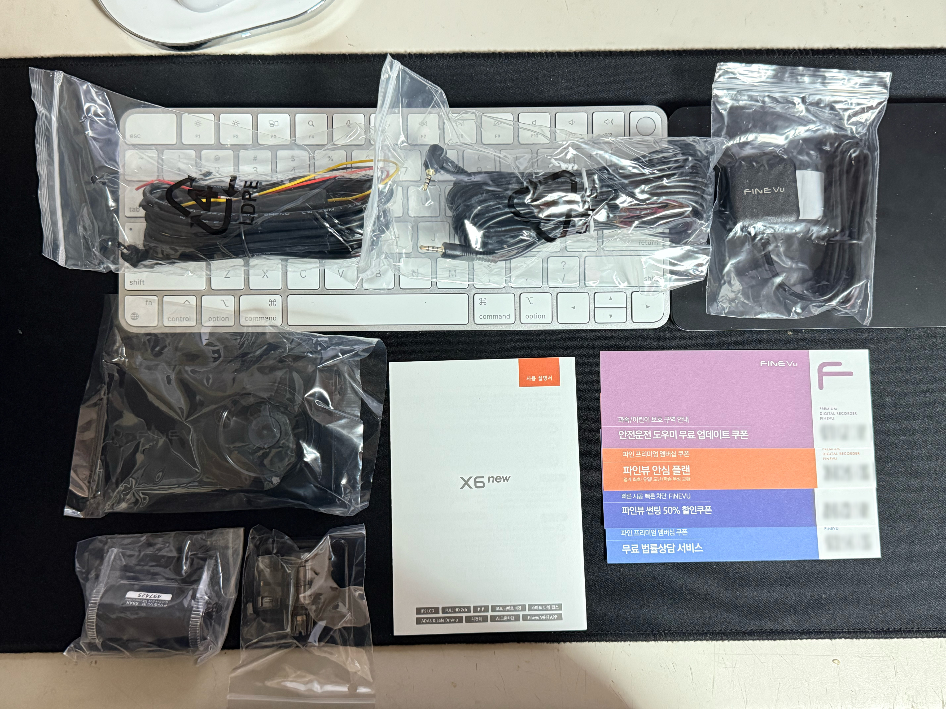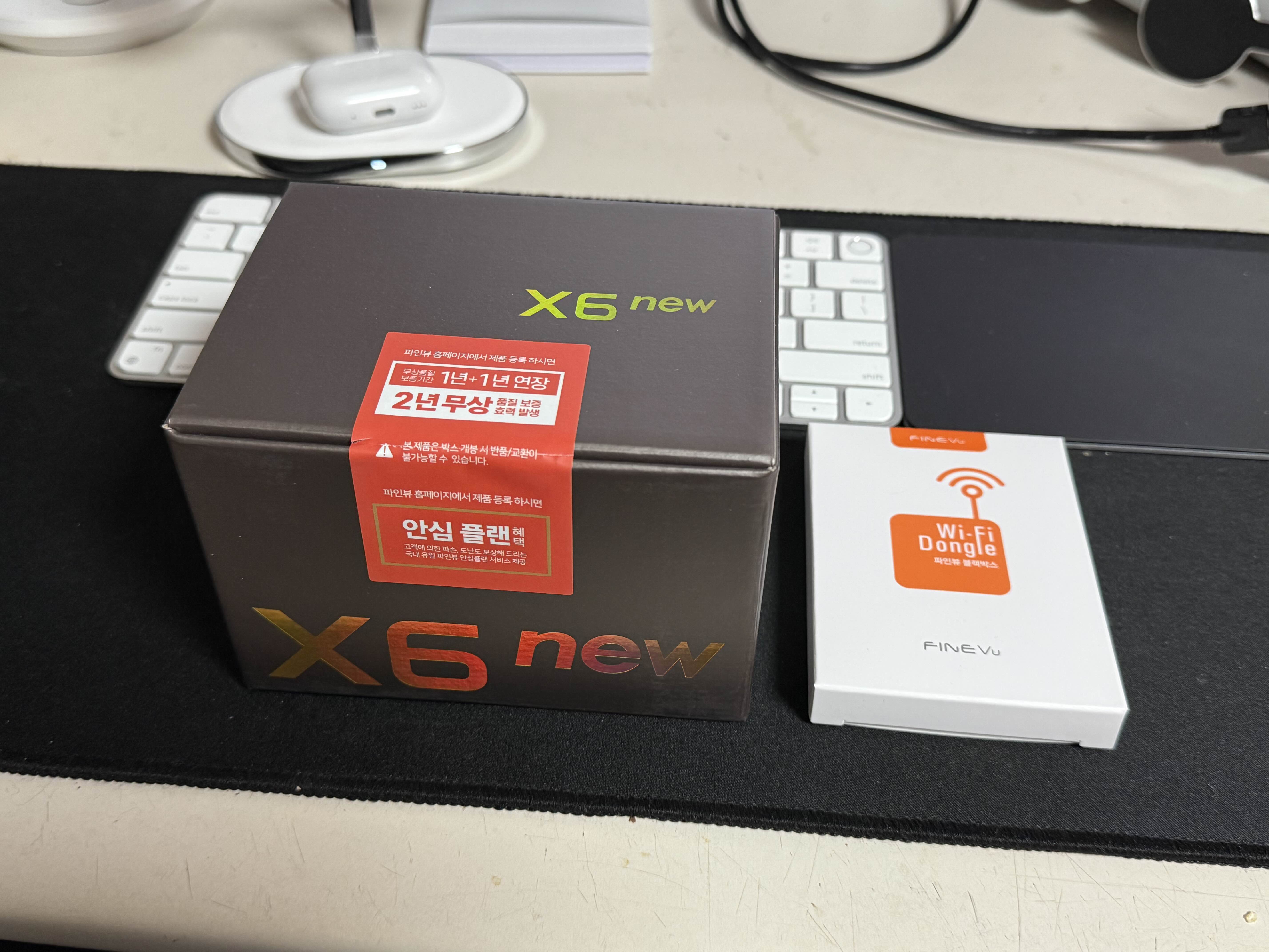 파인뷰 X6 NEW 모델이구요, 64GB microSD + Wi-Fi 동글 포함 구성으로 16만 4천원에 구매했습니다.