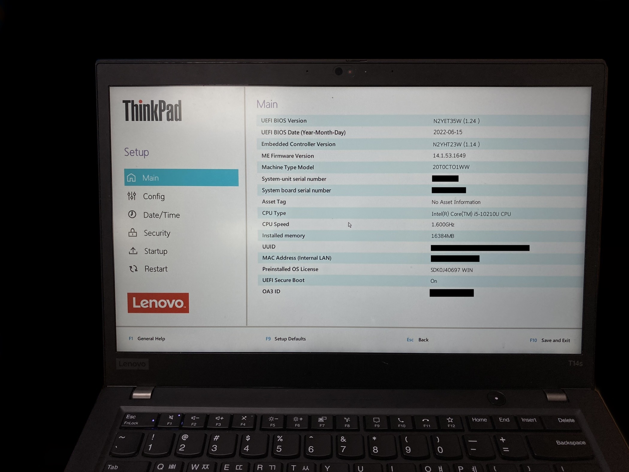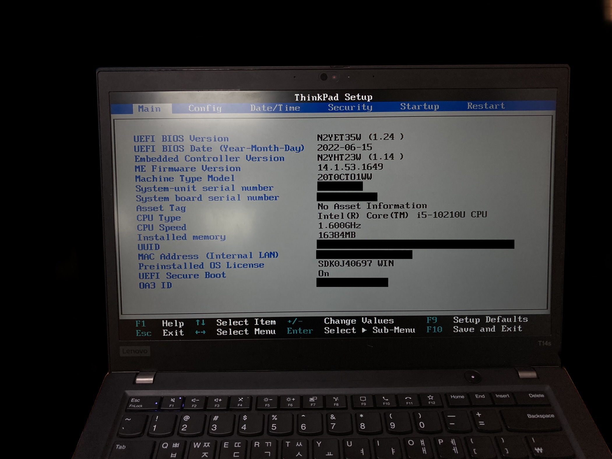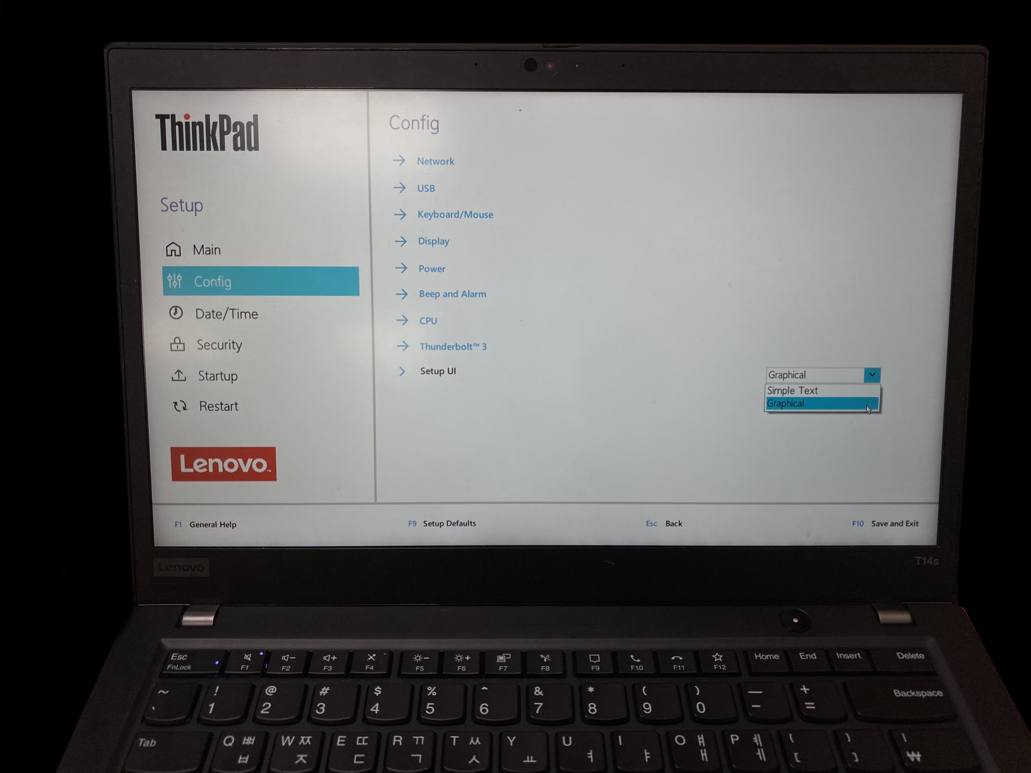 ThinkPad T14s는 셋업 UI가 두 가지로 되어 있습니다. 구조는 똑같기 때문에 같이 설명하겠습니다.