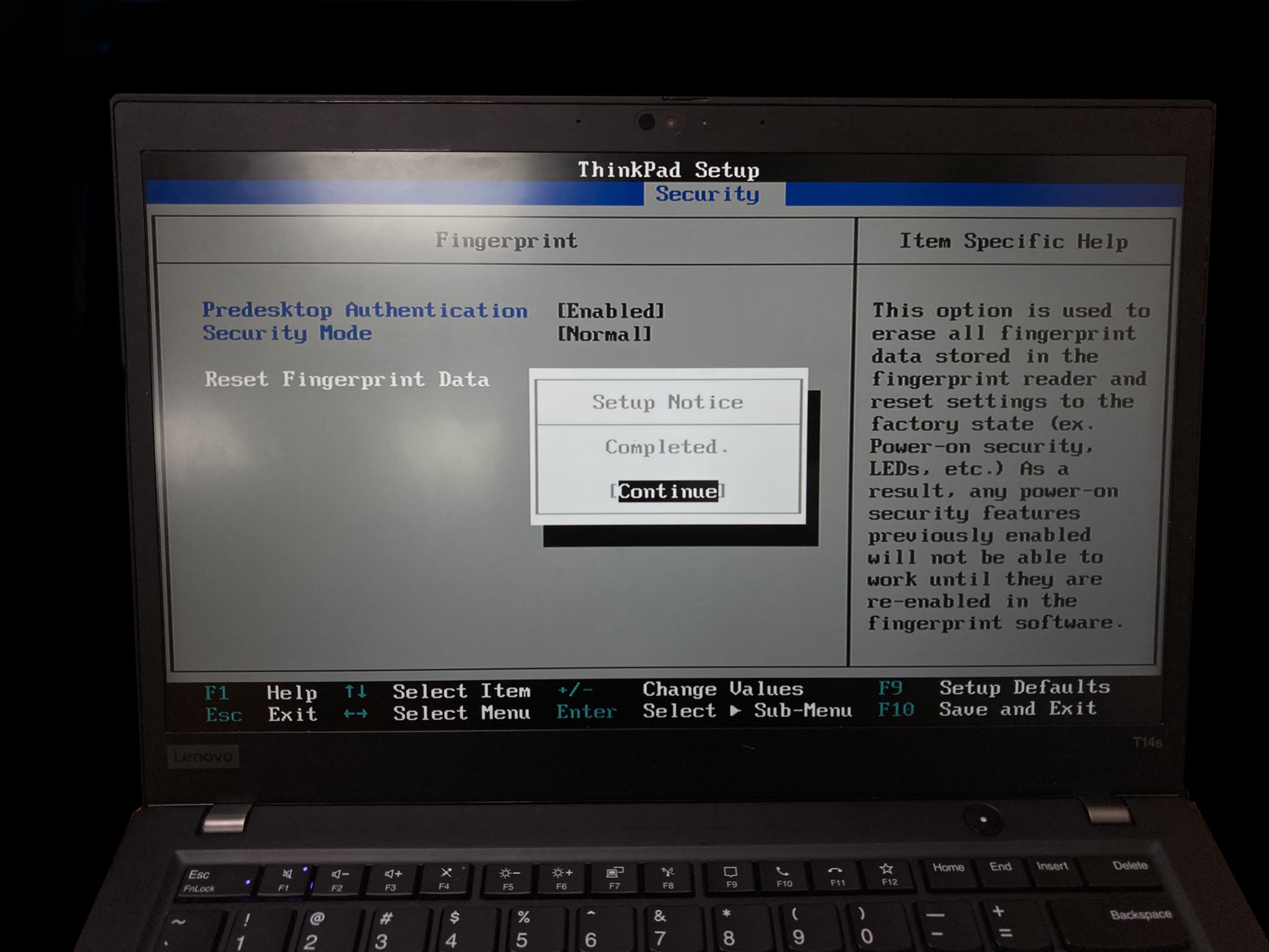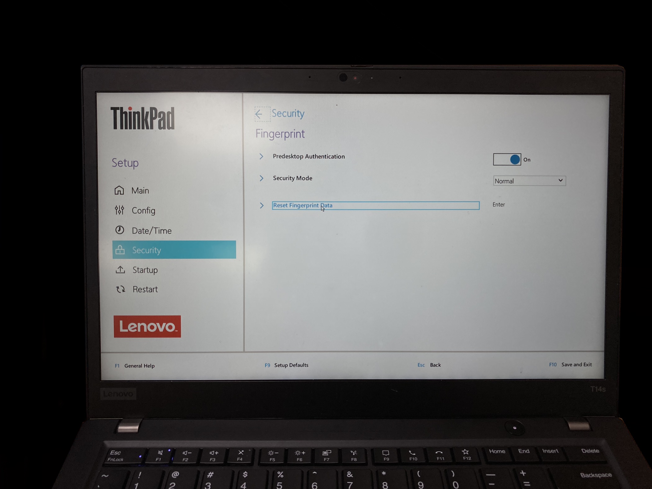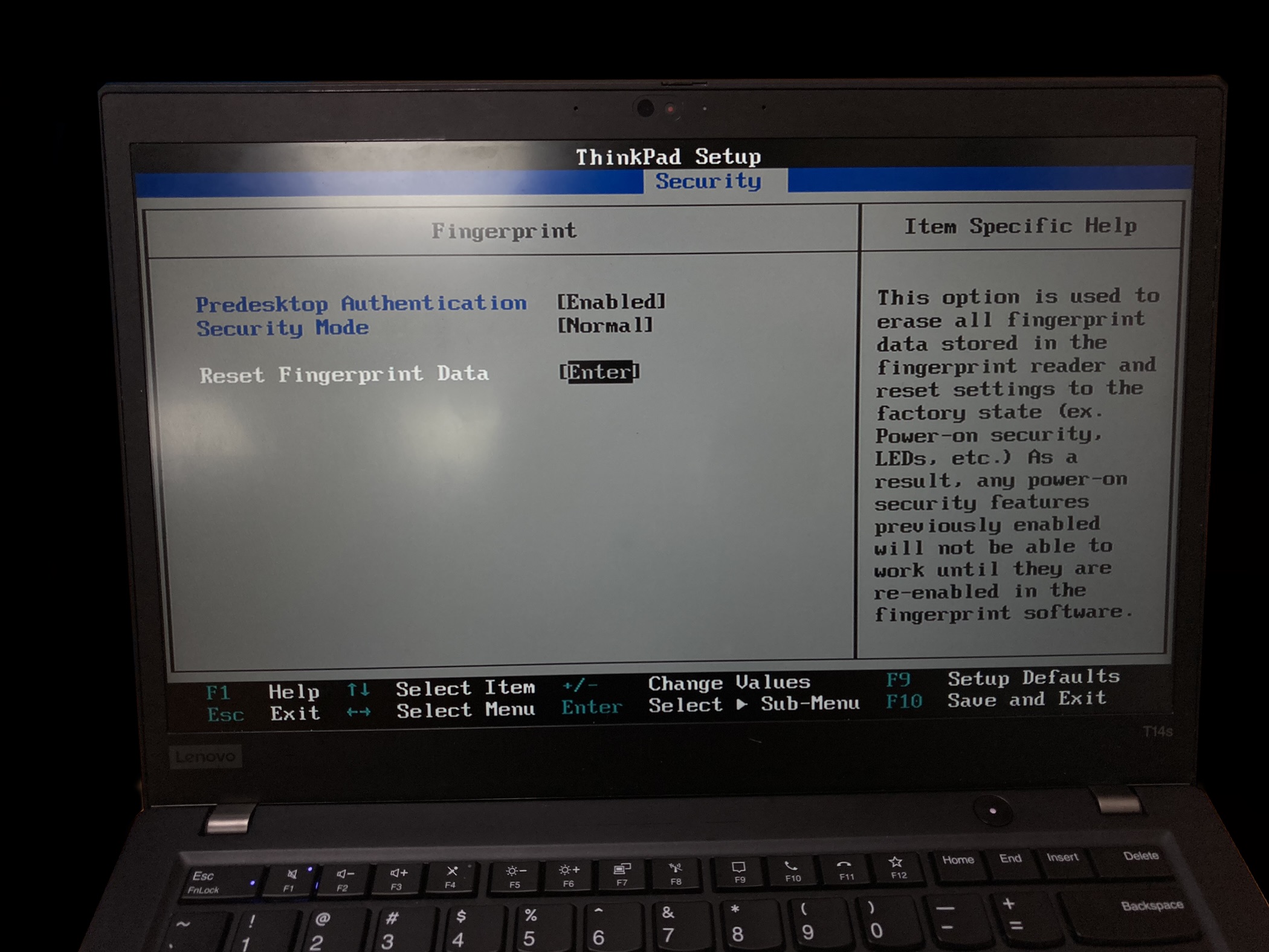 Reset Fingerprint Data를 선택해주세요.