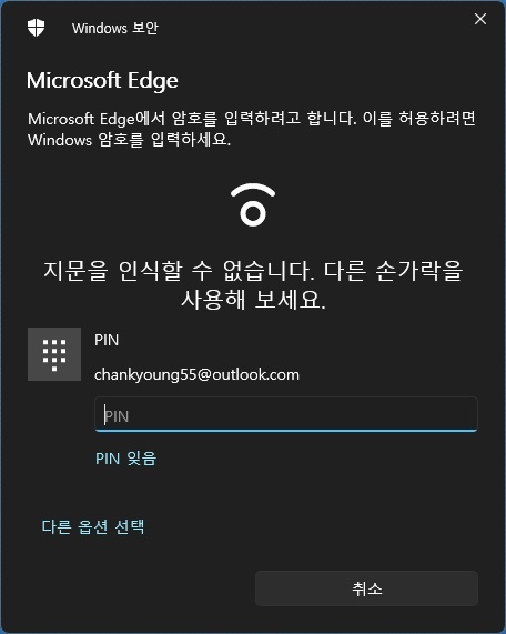 지문 데이터가 모조리 삭제되었기 때문에 지문 로그인이 불가능합니다. PIN으로 로그인해주세요.