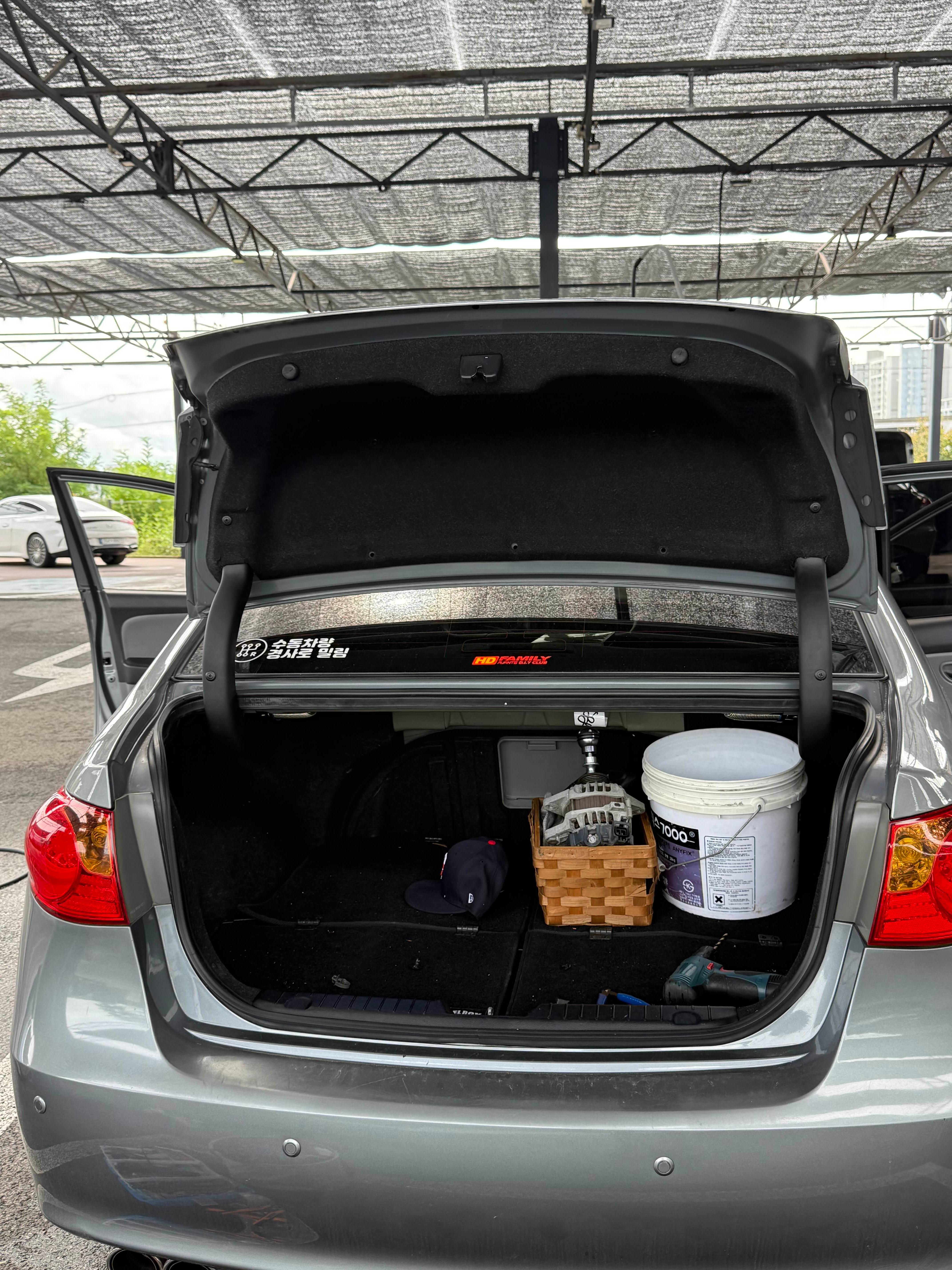 파스너를 끼워 커버를 고정하고, 트렁크 트림까지 재조립 후 간섭 부위만 살짝 잘라주면 끝입니다.