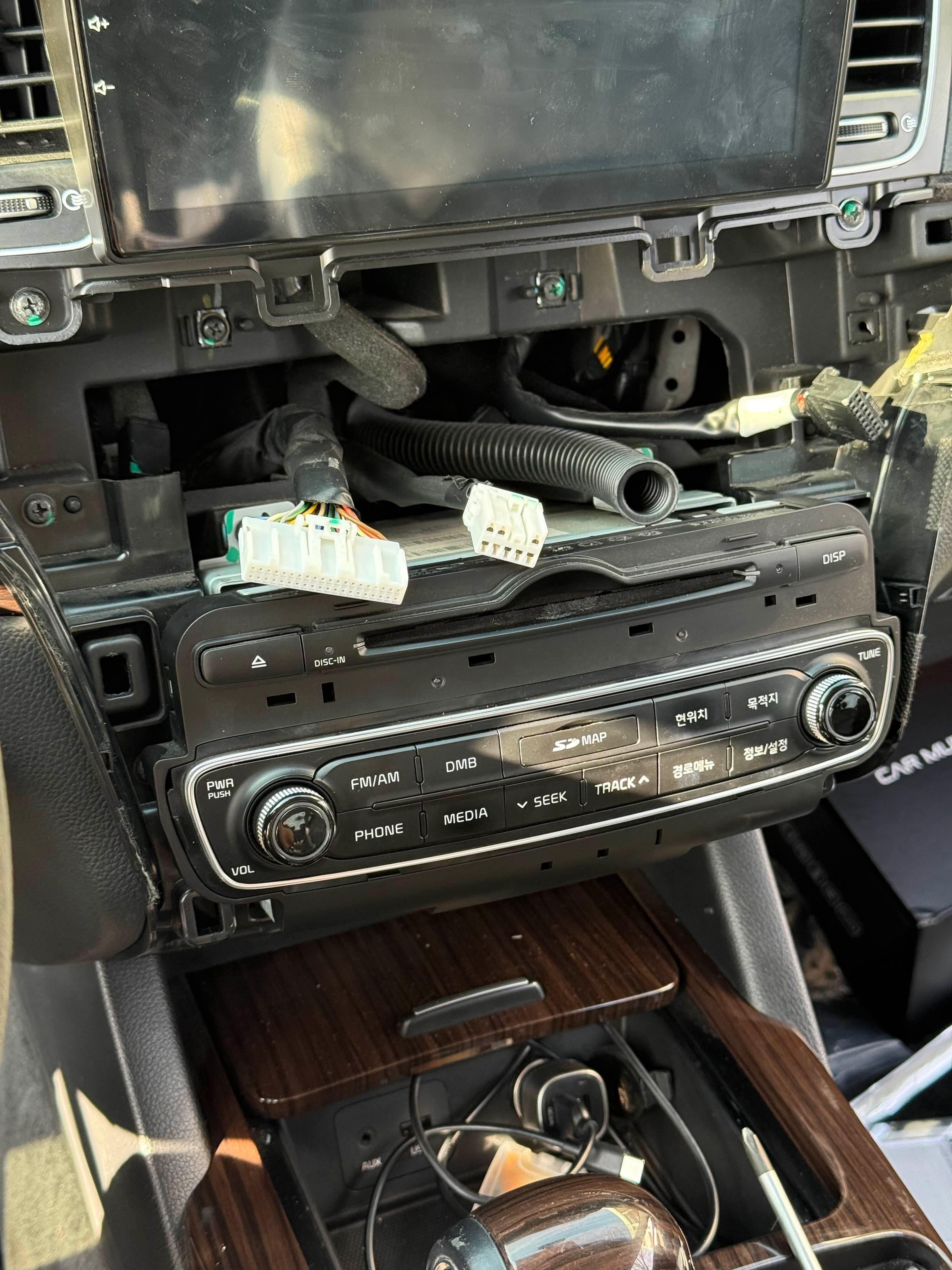 K7은 AVN 본체와 모니터가 따로 분리되어 있고, 올인원을 장착하여도 본체는 탈거하지 않고 차량에 장착되어 있습니다.