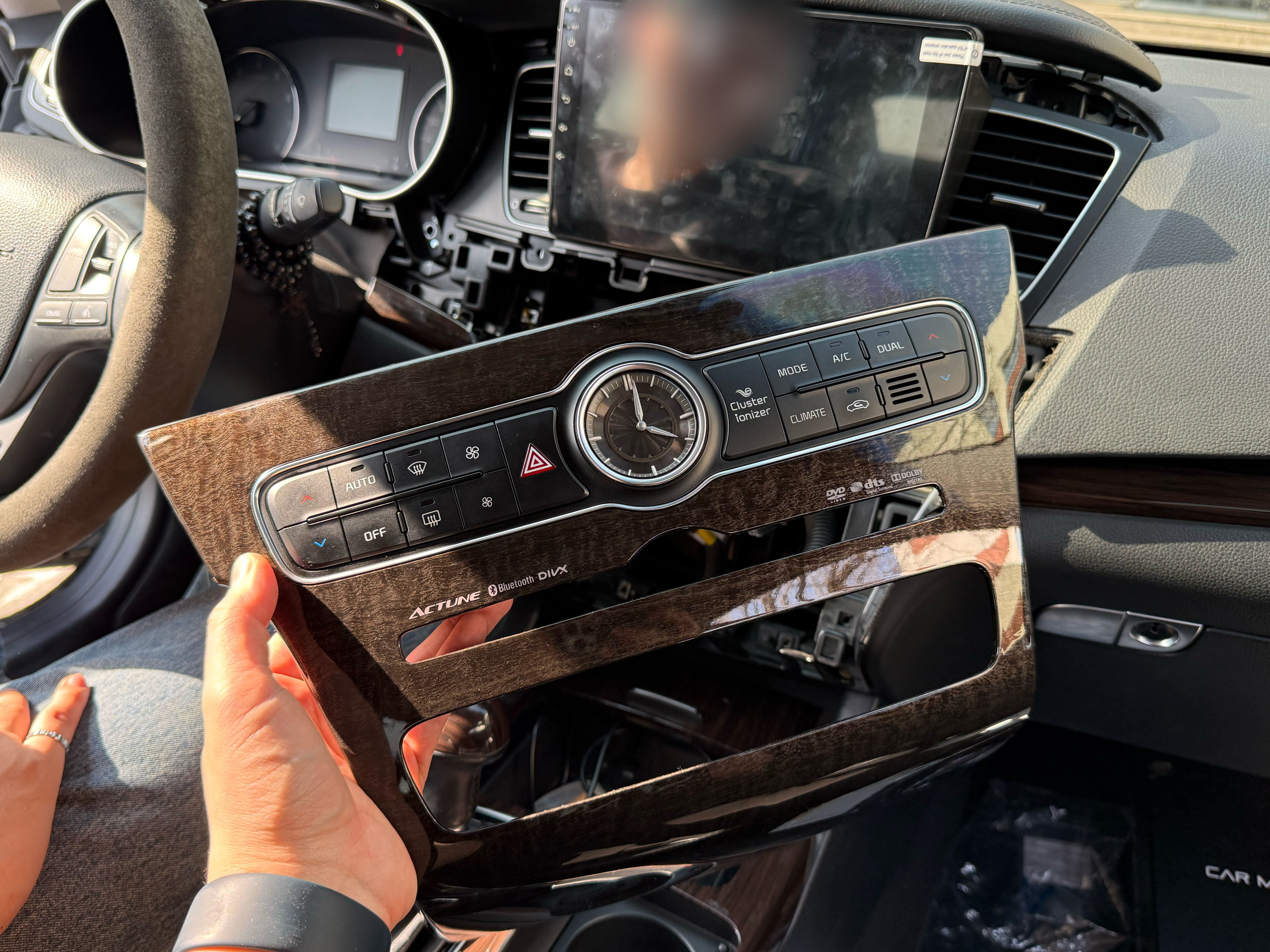AVN 본체를 장착하고, 센터페시아 내장재까지 결합하면 장착 완료입니다.
