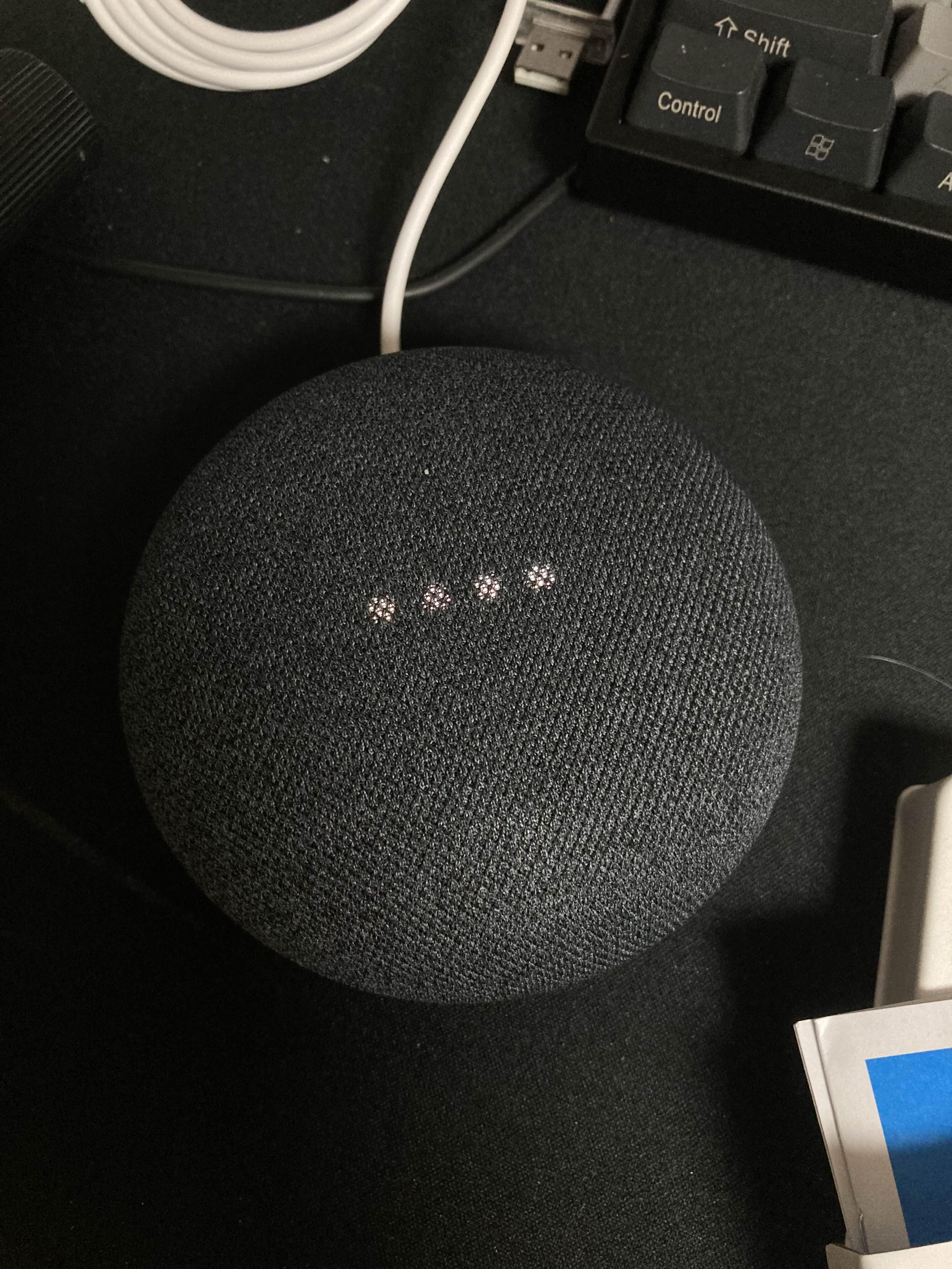 LED 4개가 파란색으로 점등되었습니다. 폰 화면에는 딱히 색깔에 대한 정보는 없습니다. 두 대 이상의 Nest 기기가 있을 때 기기를 구분하는 용으로 뜨는 것 같습니다.