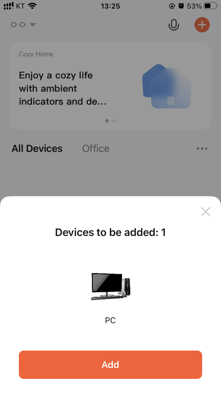 이제 전원을 연결하고 Tuya 앱을 실행합니다. 자동으로 기기가 검색되고, 연결할 거냐고 묻는 창이 뜹니다.