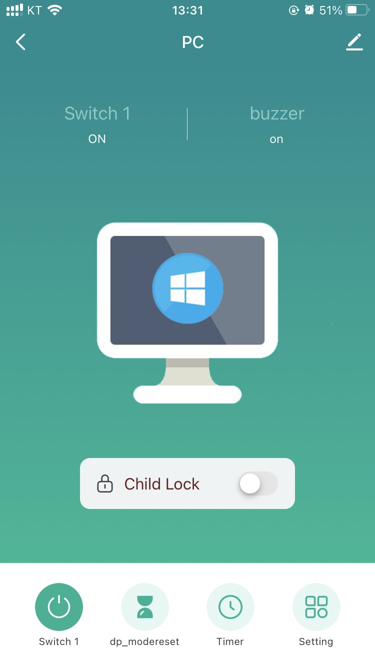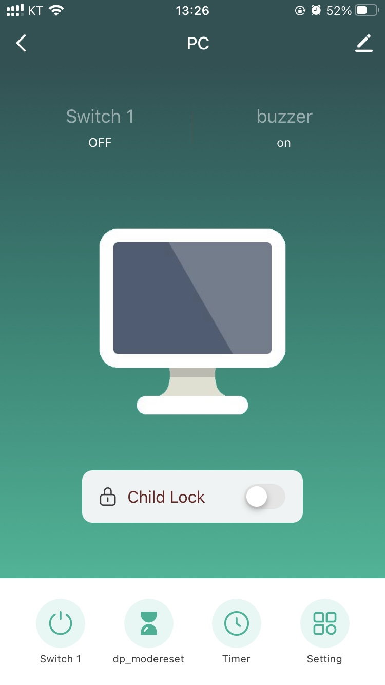 Tuya 앱에 연결하여 원격으로 PC를 켤 수도 있고, 차일드락을 설정하여 물리 버튼이 작동하지 않게 할 수도 있습니다. 433.92MHz의 RF 버튼을 이용하여 외부 전원 버튼을 만들 수도 있네요.