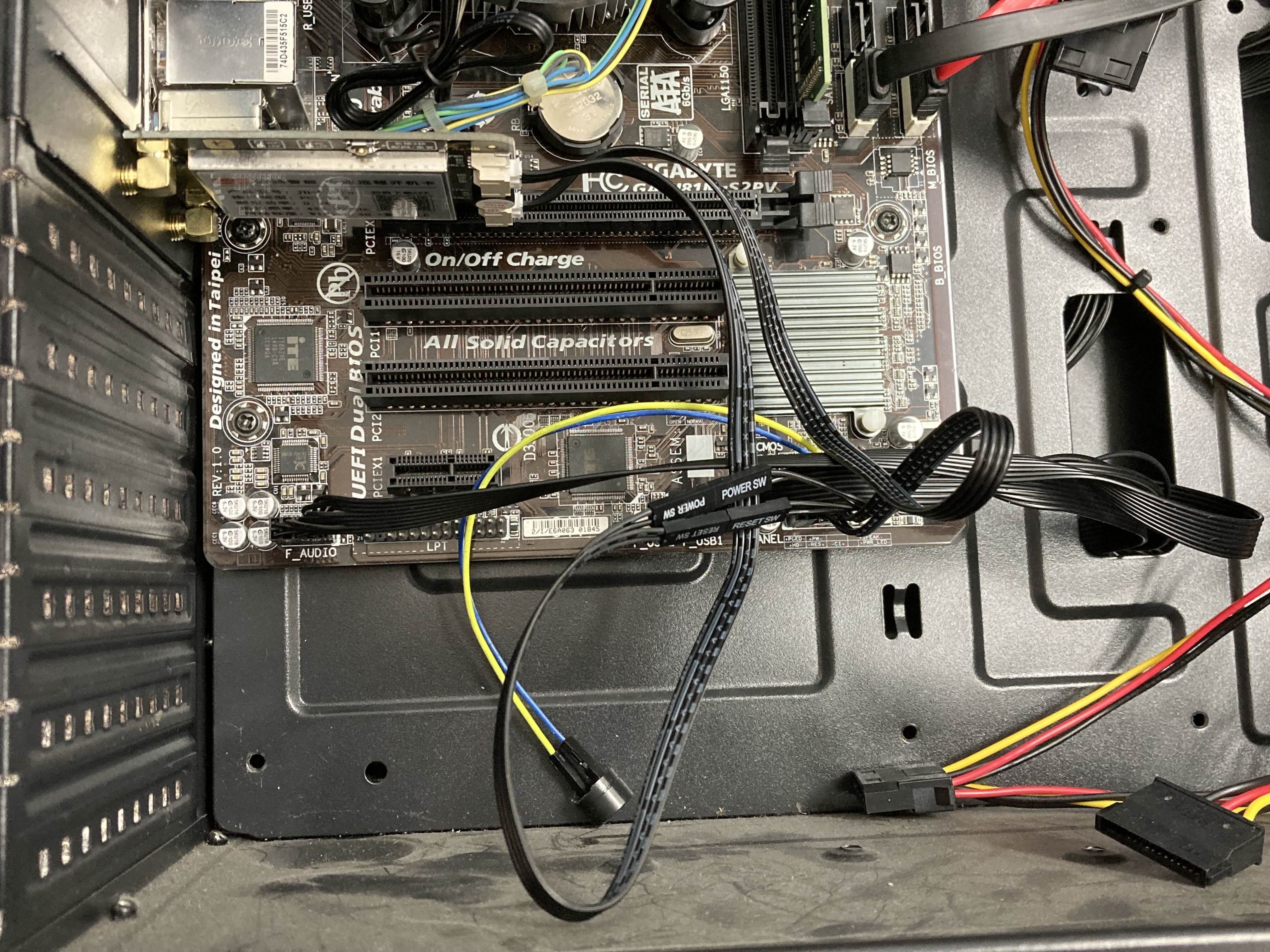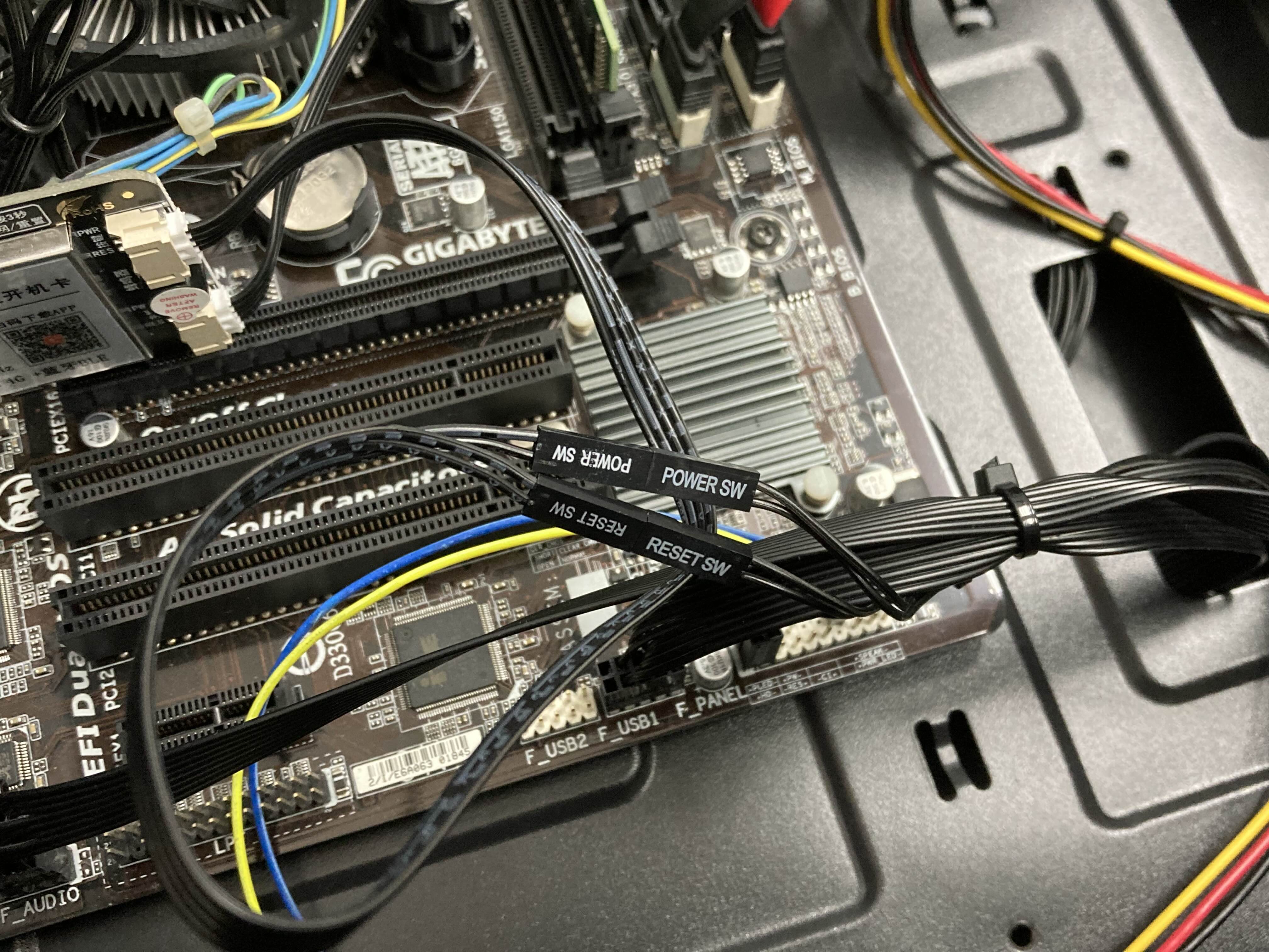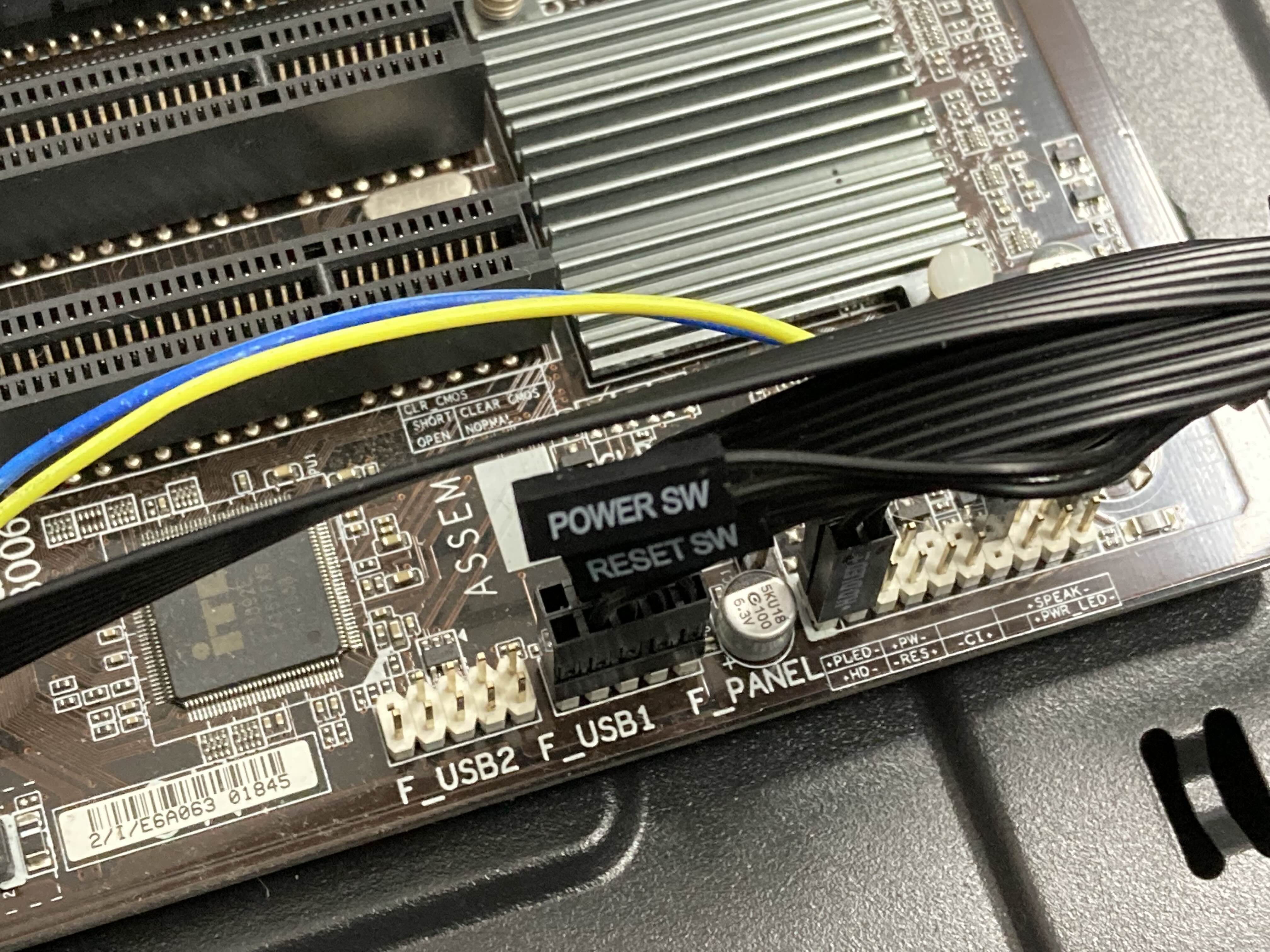 모듈에서 나오는 전원, 리셋 스위치 선을 메인보드에 연결해줍니다.