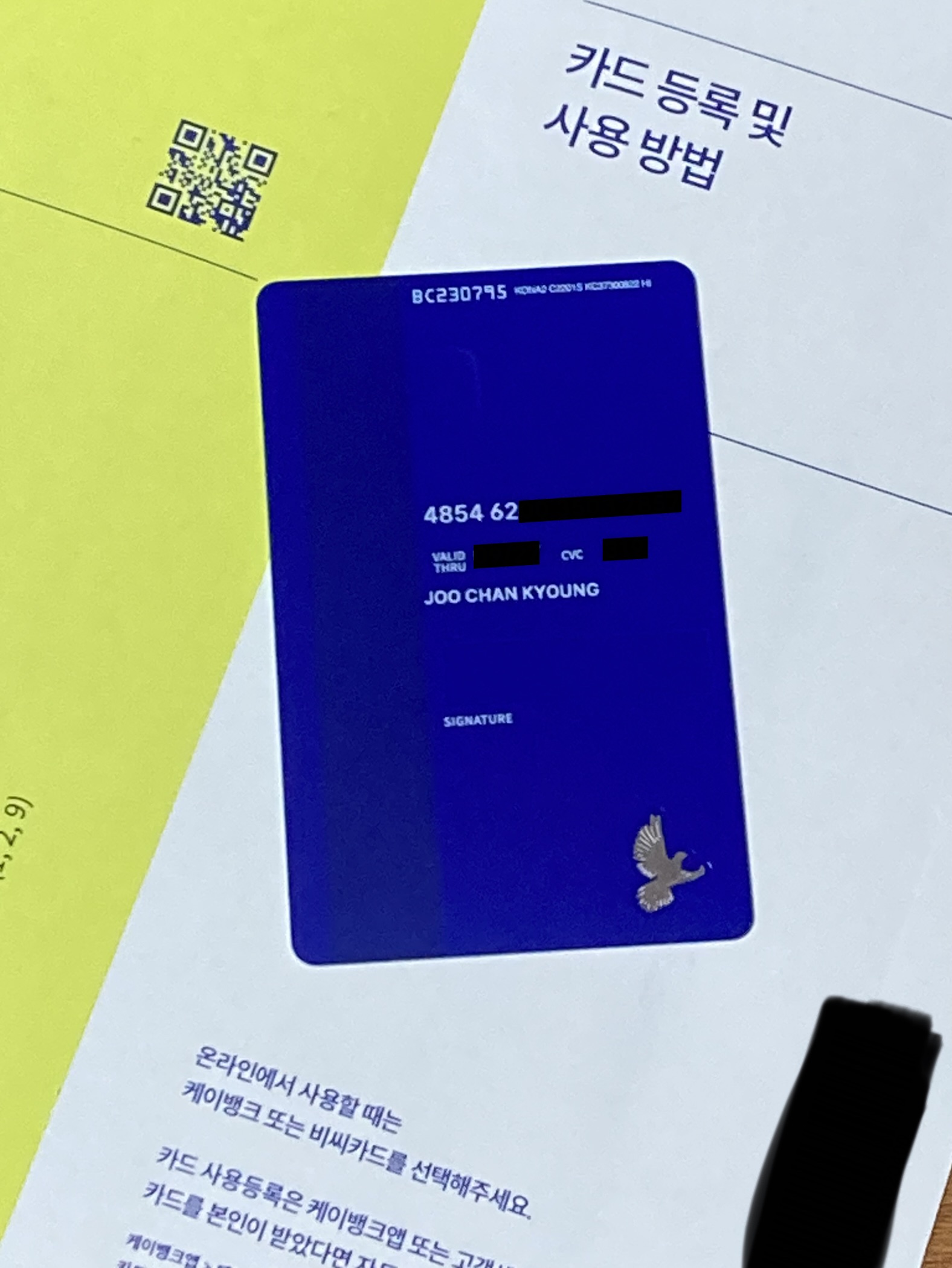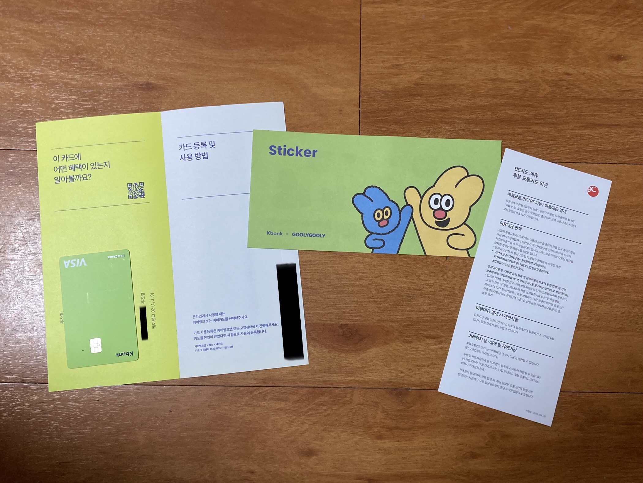 그러고 보니 케이뱅크는 카드 사용등록 안내를 다른 카드사와 다르게 용지에 적어놓았습니다. 카뱅은 스티커로 붙여놓던데..