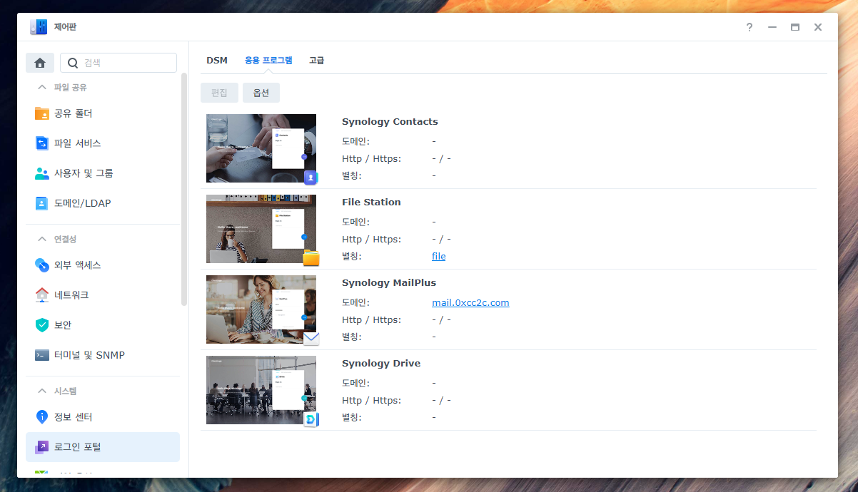 이제 거의 마지막입니다. mail.xxxx.com 처럼 DSM 환경을 거치지 않고 바로 MailPlus로 접속할 수 있게 해보겠습니다.