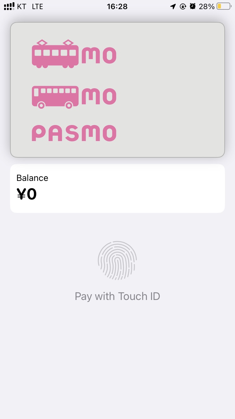 이어뮤 태깅 위치에 아이폰을 갖다대니 자동으로 PASMO 카드가 뜨면서 Touch ID를 요청합니다.