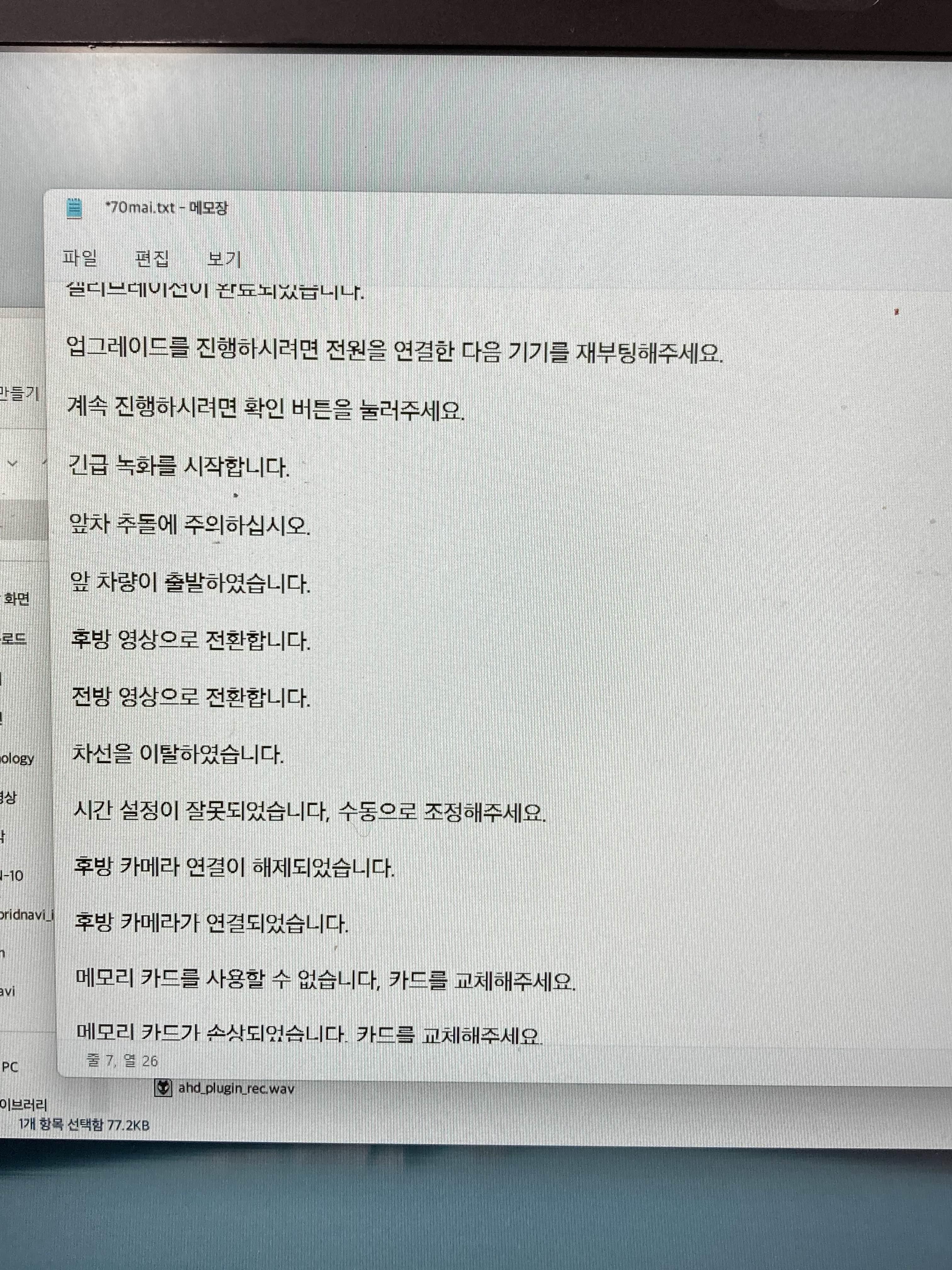 이제 펌웨어를 다시 리팩해서 블랙박스에 넣고 강제 업데이트를 돌려주면 새로운 음성이 적용됩니다.