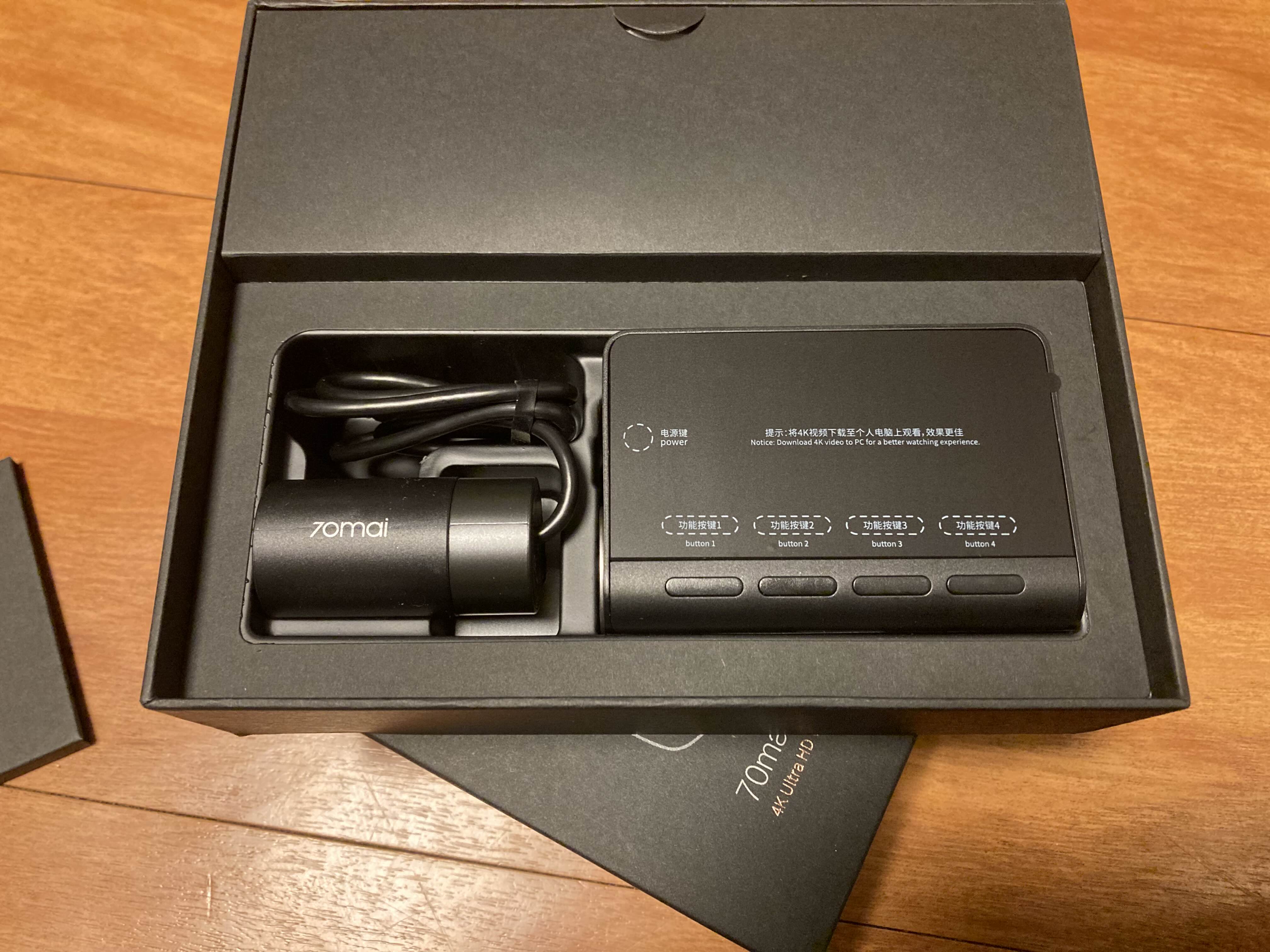 왼쪽은 상시녹화용 전원 케이블 (Hardwire Kit), 오른쪽이 본품 상자입니다. 상자가 이쁩니다, 지금까지 알리에서 샀던 것중에 이게 제일 고급진듯.. ㅋㅋㅋ