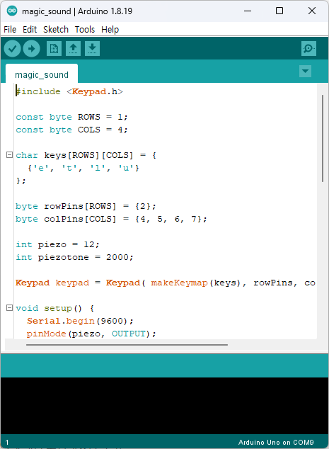 코드가 업로드되지 않을 경우 Arduino IDE > 라이브러리 관리 메뉴로 들어가 Keypad 라이브러리 설치 여부를 꼭 확인하세요.