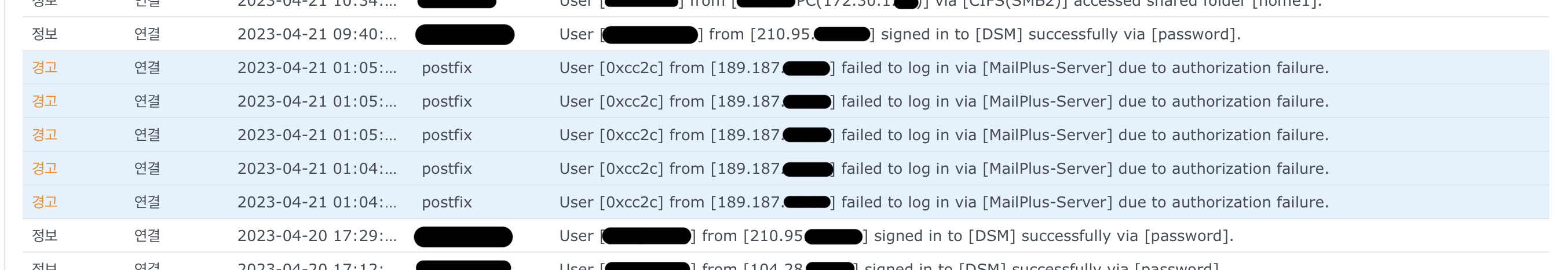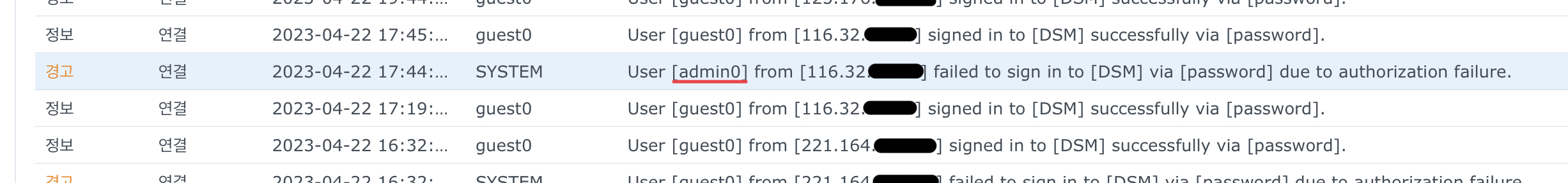 간혹 접속 로그에 [admin], [think], [0xcc2c] 등의 ID로 로그인을 시도했다는 기록이 찍혀있는데요.. ㅋㅋㅋ