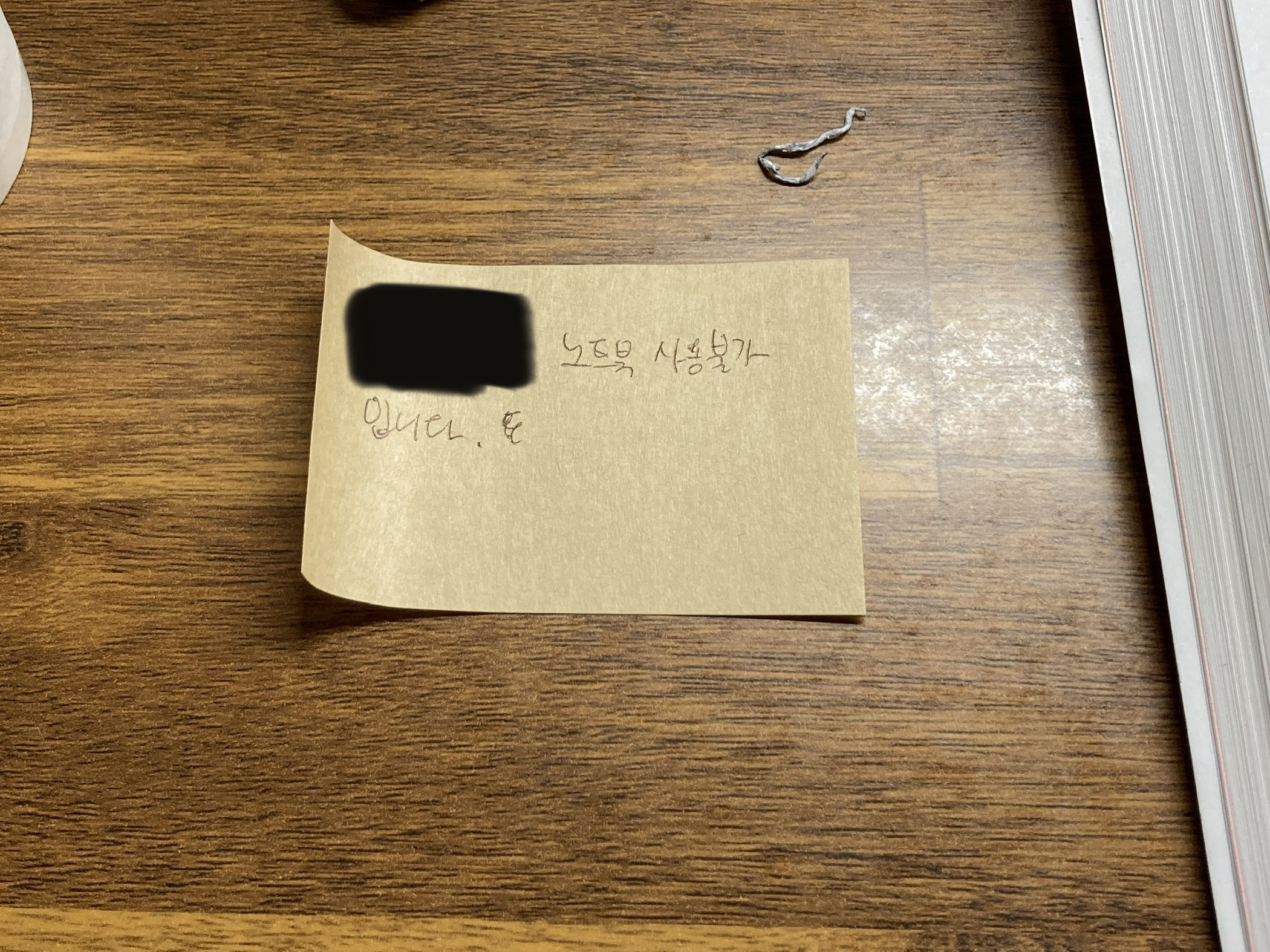 커피 뽑으러 간 사이에 누군가가 쪽지를 남겨놓고 갔네요. ‘노트북 사용금지 입니다.’
