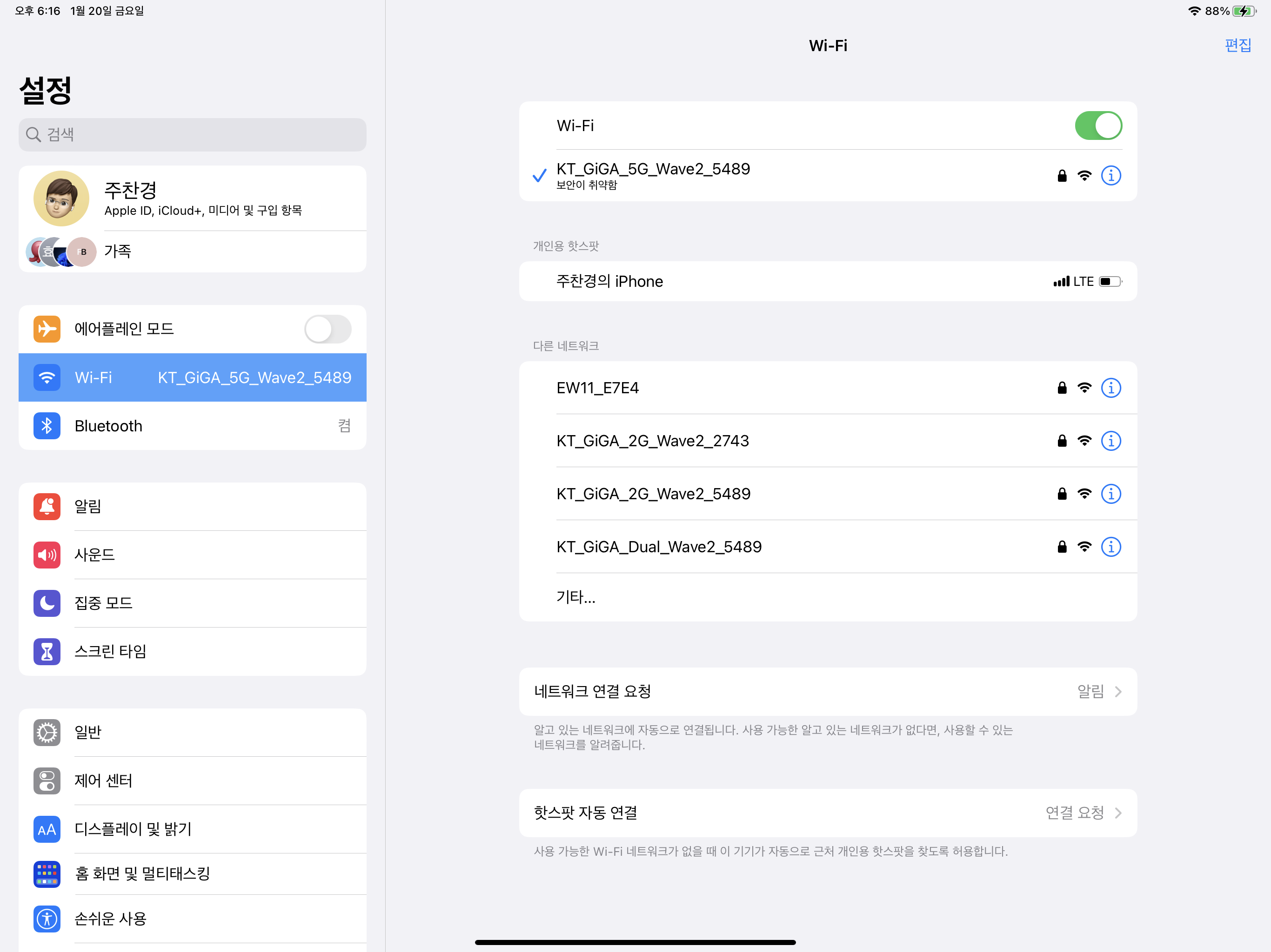 제가 셀룰러로 사지 않은 이유 중 하나. 주변에 같은 Apple ID로 연결된 다른 기기의 핫스팟을 원격으로 켤 수 있기 때문에 굳이 셀룰러 모델이 필요하지 않습니다. 물론 아이폰 배터리가 다 닳아 꺼졌다면 어쩔 수 없지만..
