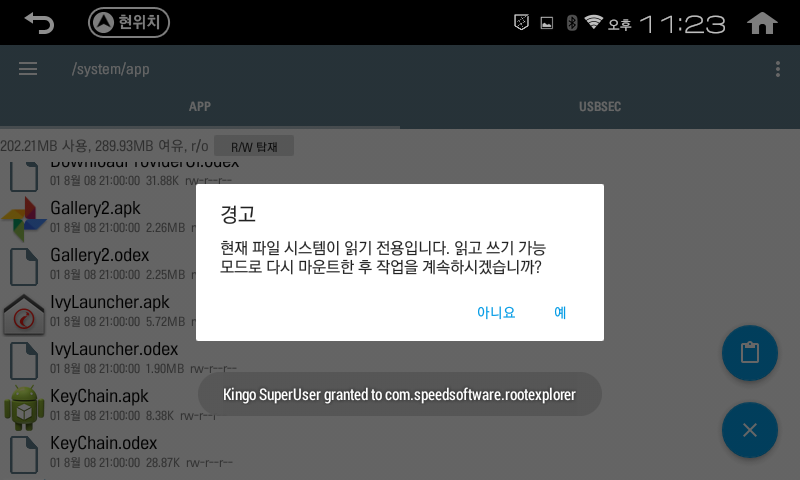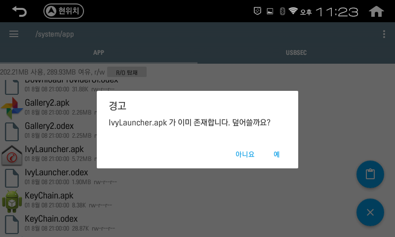 루트 경로에 진입 가능한 파일 탐색기를 통해 /system/app 폴더에 진입합니다. 저는 Root Explorer 기준으로 설명하겠습니다.