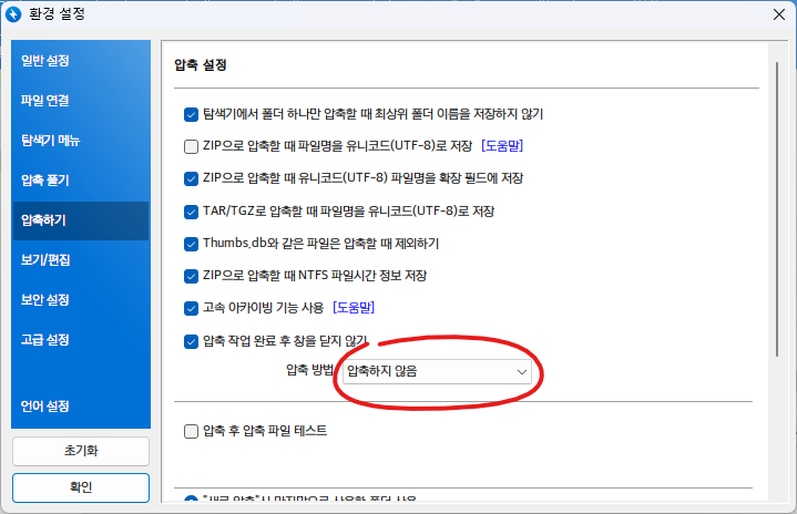 반디집 환경설정에서 반드시 압축 방법을 [압축하지 않음]으로 설정해주세요.