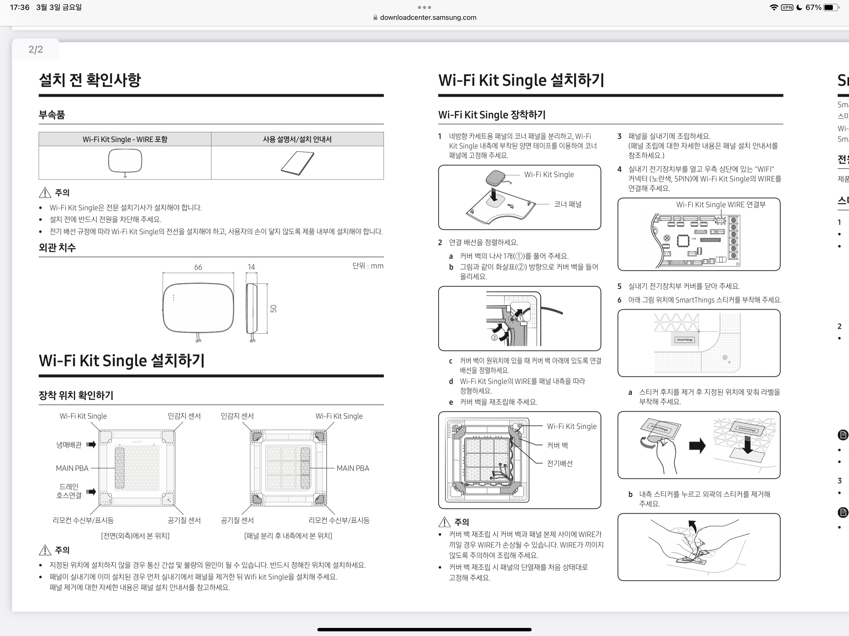 이 키트와 함께 신형 무풍 패널도 함께 출시된 것으로 추정되는데, 기존 패널 모델명 뒤에 W가 붙어있습니다. (무풍패널 기준 PC4NUFK1N → PC4NUFK1NW) SmartThings 로고도 있고..